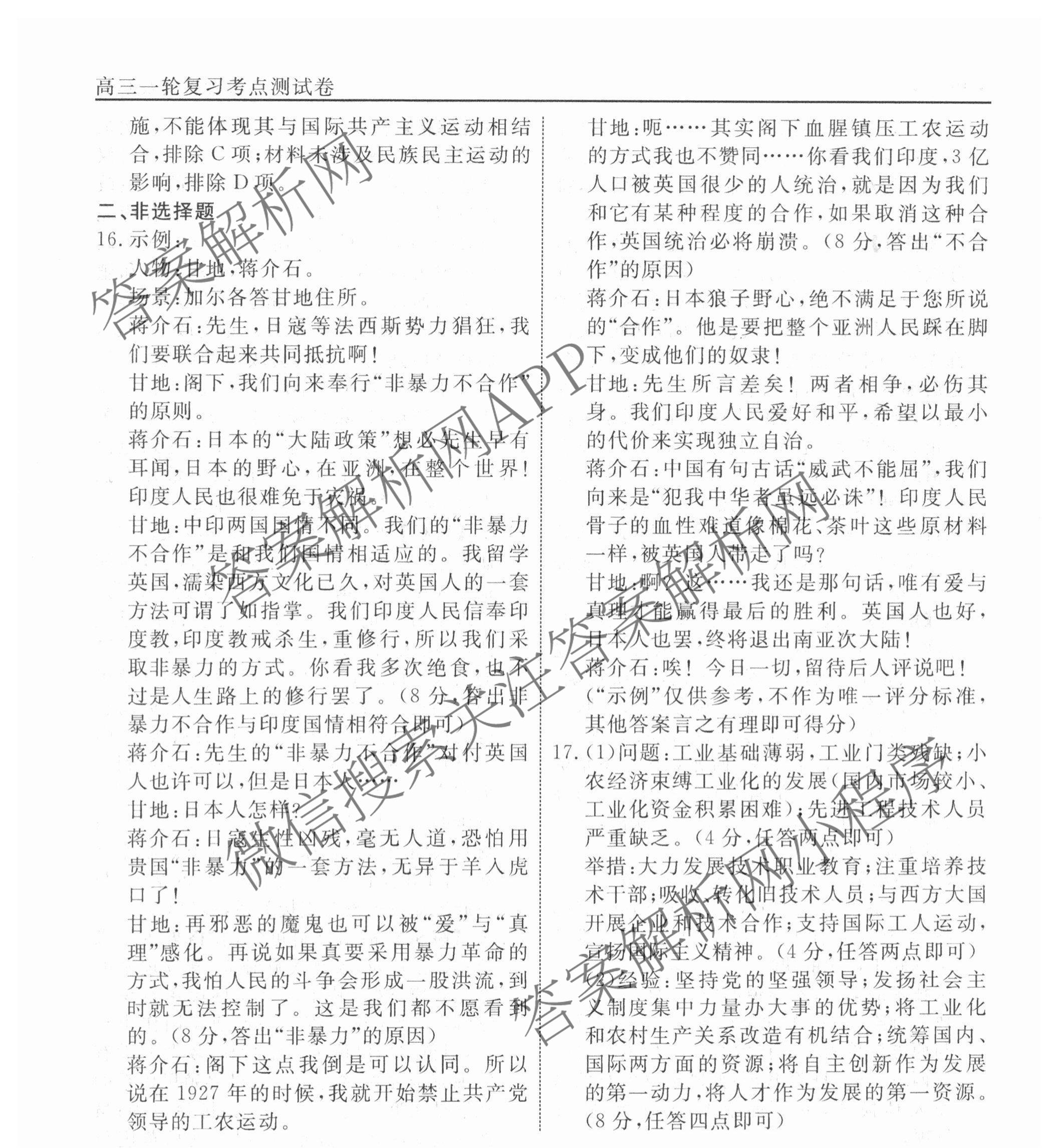 衡水名师卷2024-2025学年度高三一轮复习考点测试卷历史(40分钟空心菱形)(二十三)23答案