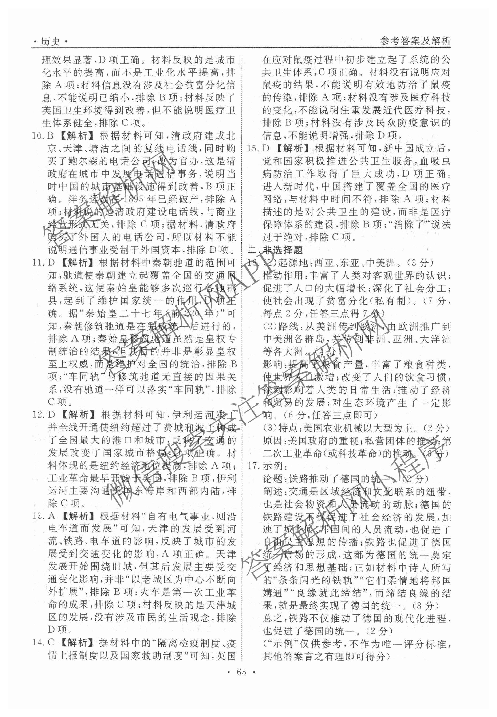 衡水名师卷2024-2025学年度高三一轮复习考点测试卷历史(40分钟空心菱形)(二十九)29答案