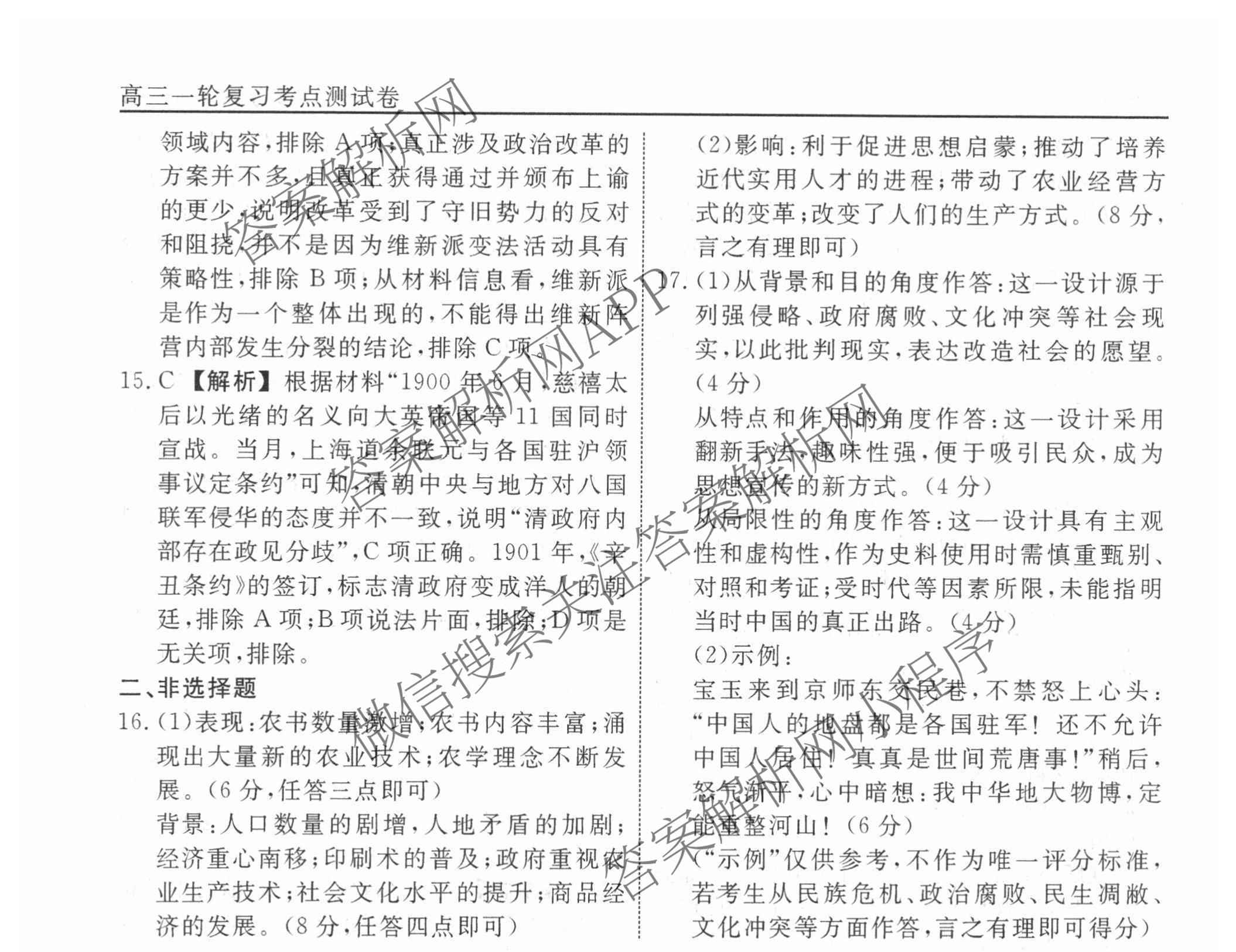 衡水名师卷2024-2025学年度高三一轮复习考点测试卷历史(40分钟空心菱形)(八)8答案