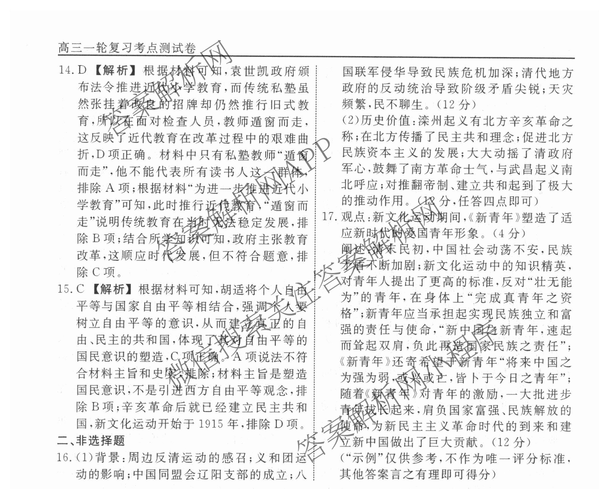 衡水名师卷2024-2025学年度高三一轮复习考点测试卷历史(40分钟空心菱形)(九)9答案