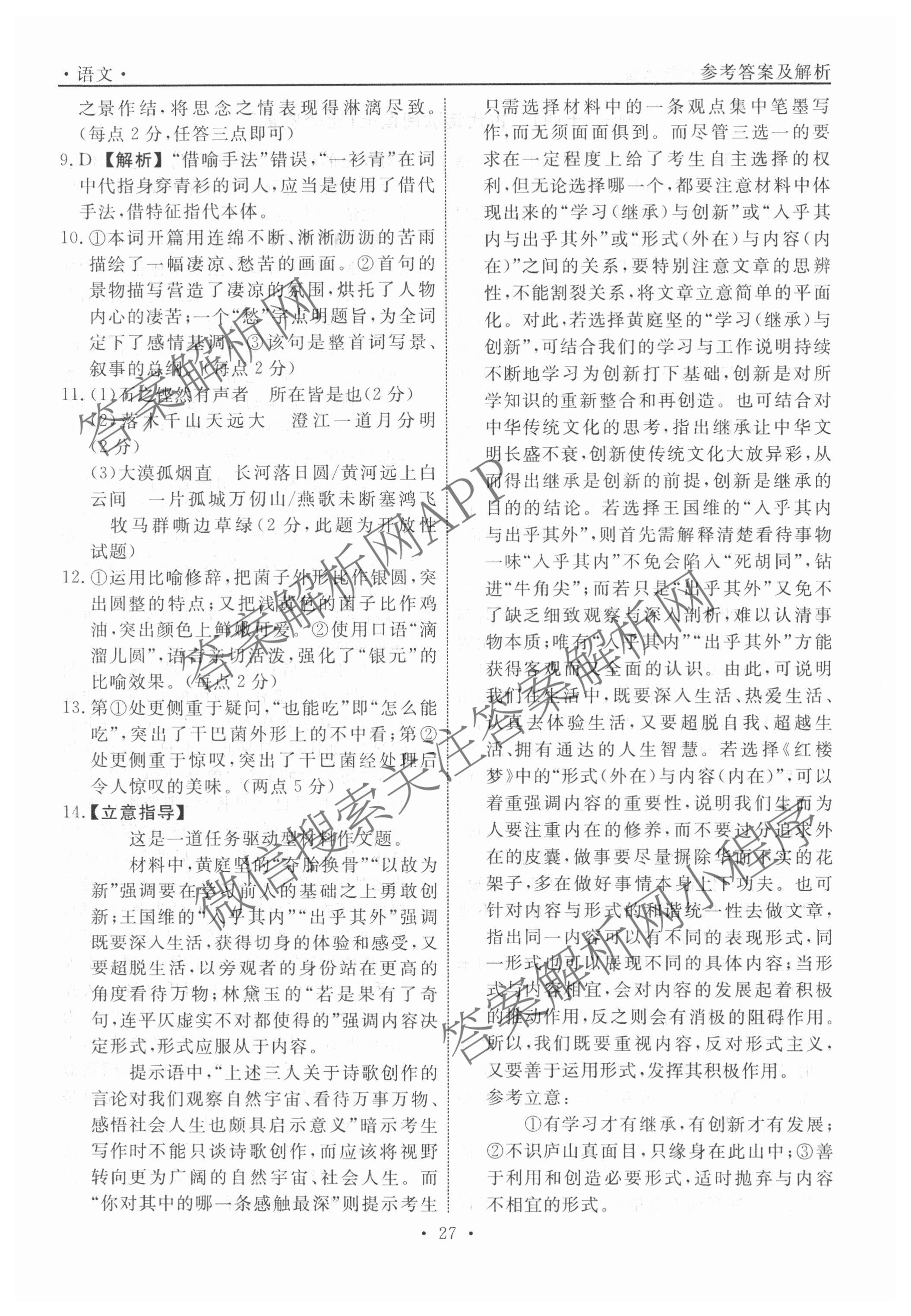 衡水名师卷2024-2025学年度高三一轮复习考点测试卷语文(40分钟空心菱形)(十三)13答案
