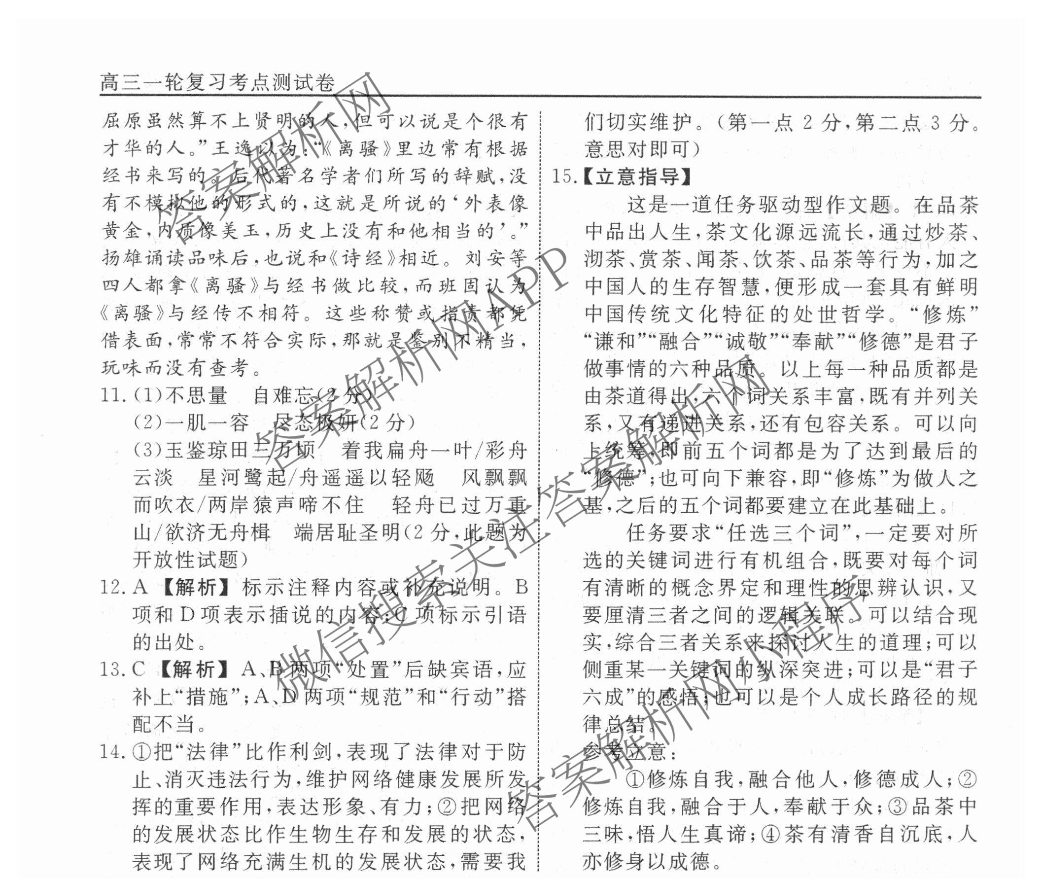 衡水名师卷·2024-2025学年度高三一轮复习考点测试卷·语文(40分钟·空心菱形)(三)3答案,目前分科卷答案网已经汇总了衡水名师卷·2024-2025学年度高三一轮复习考点测试卷·语文(40分钟·空心菱形)(三)3答案的各科答案和试卷,获取更多衡水名师卷答案解析,请在关注本站。