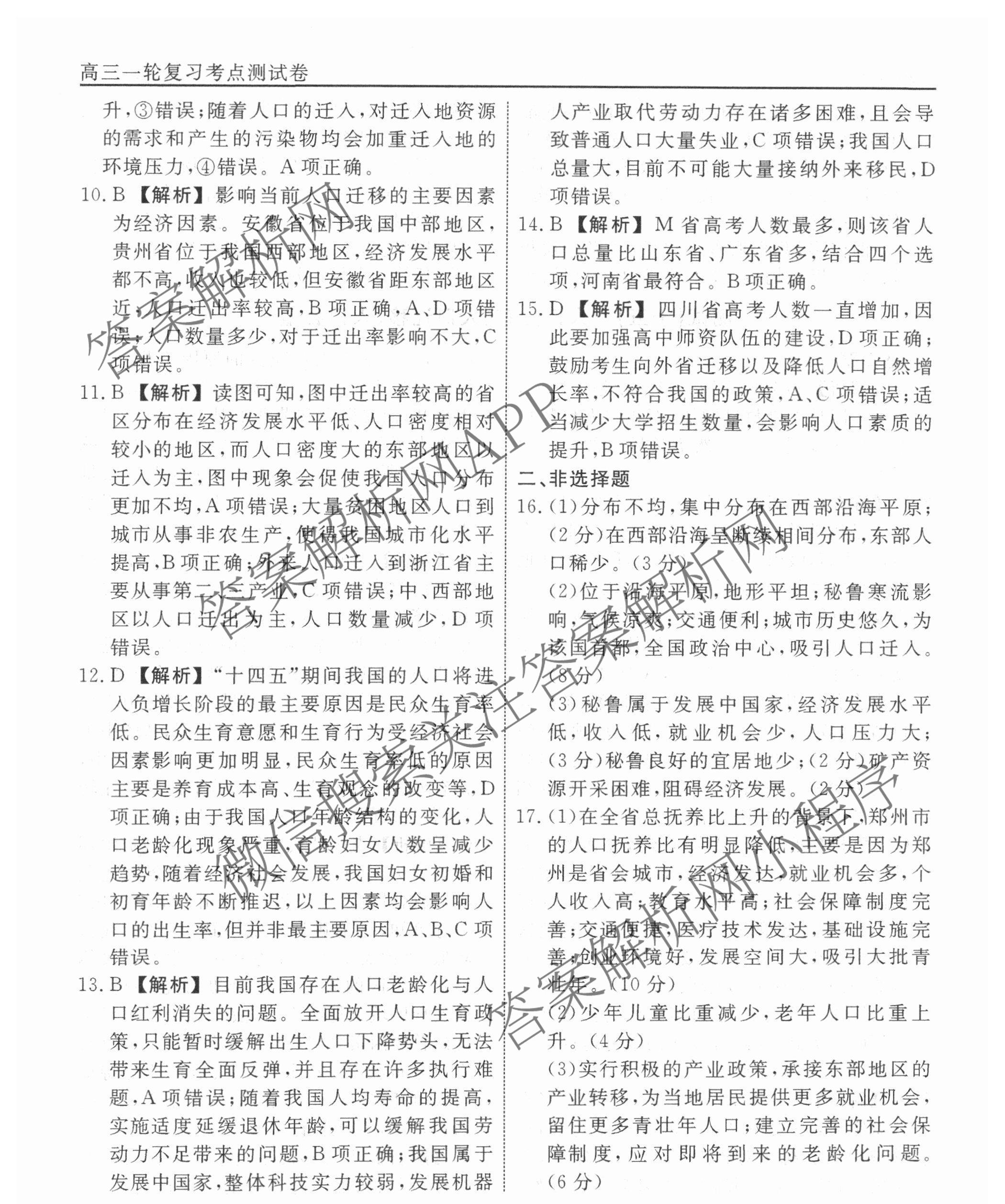 衡水名师卷2024-2025学年度高三一轮复习考点测试卷地理(40分钟空心菱形)(十五)15答案