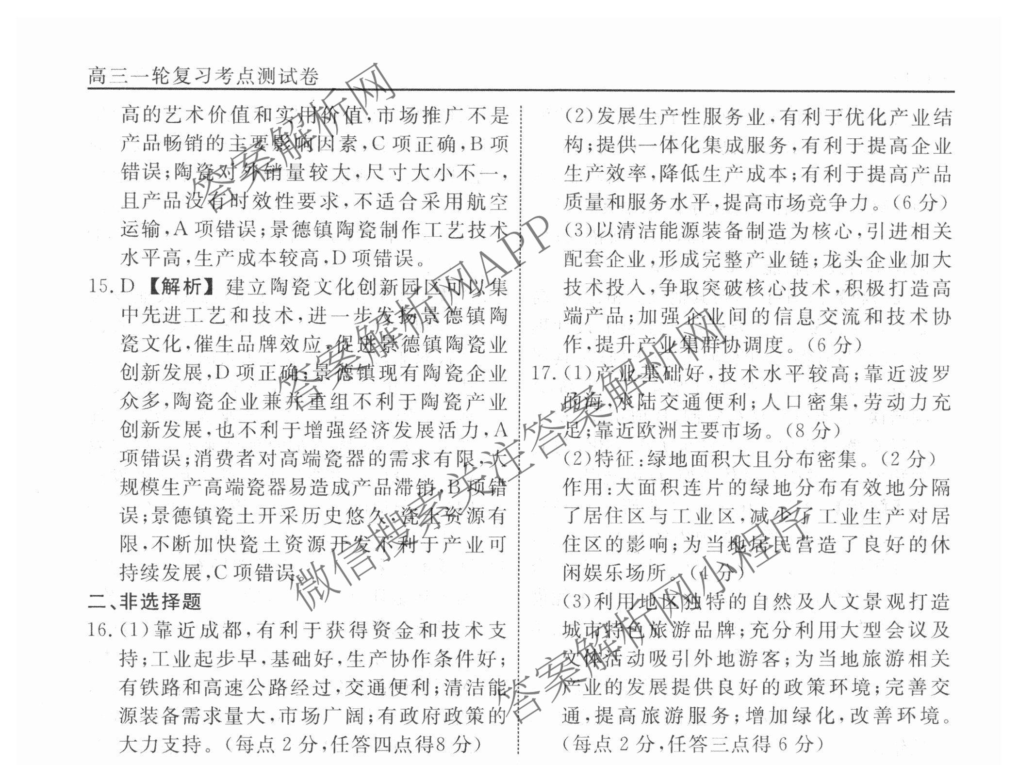 衡水名师卷2024-2025学年度高三一轮复习考点测试卷地理(40分钟空心菱形)(十八)18答案