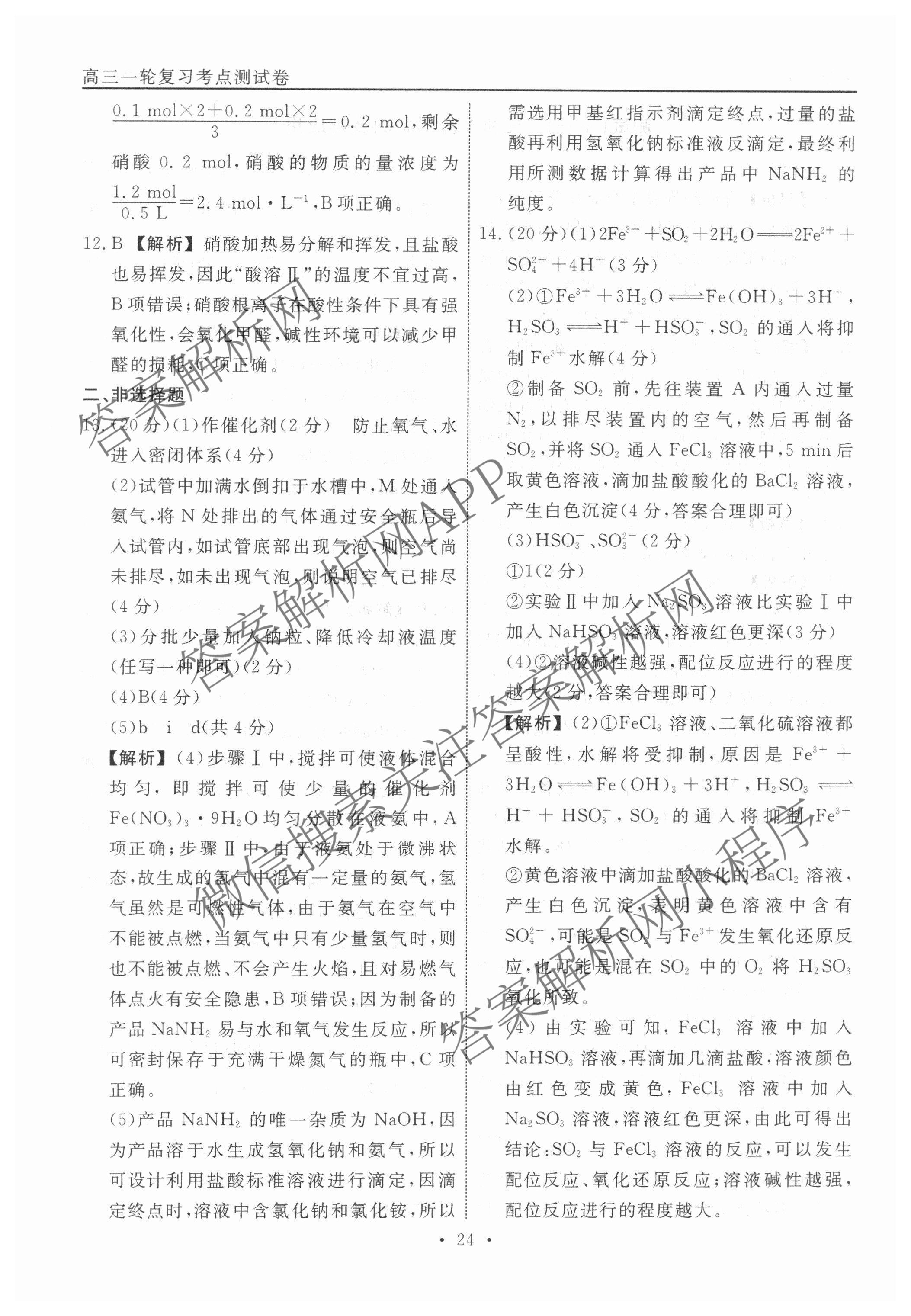 衡水名师卷2024-2025学年度高三一轮复习考点测试卷化学(40分钟空心菱形)(十一)11答案