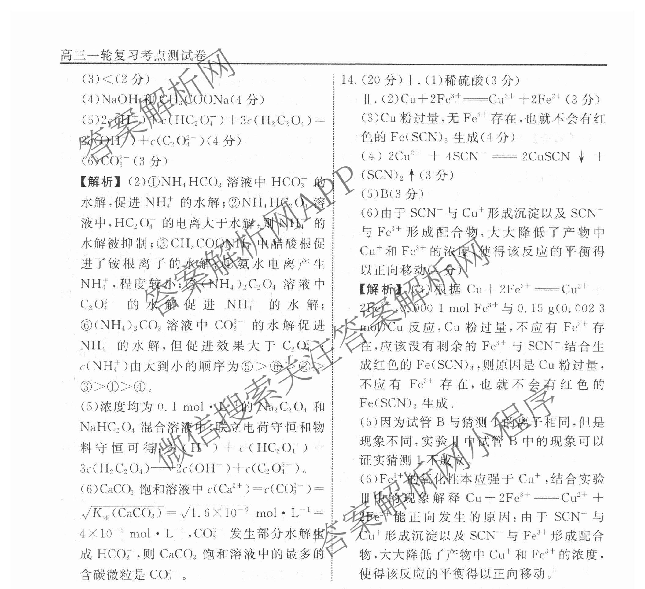 衡水名师卷2024-2025学年度高三一轮复习考点测试卷化学(40分钟空心菱形)(二十五)25答案