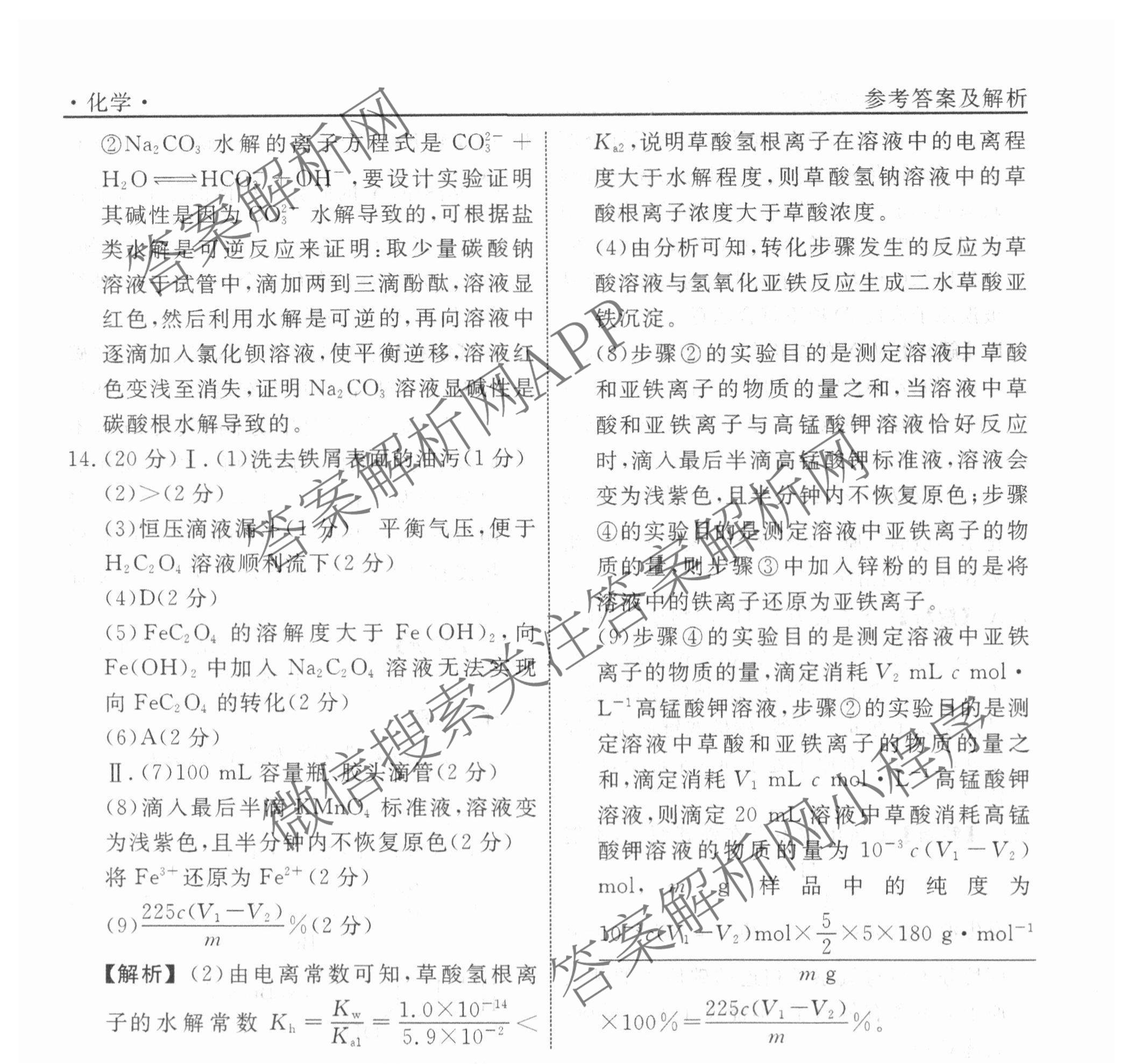 衡水名师卷2024-2025学年度高三一轮复习考点测试卷化学(40分钟空心菱形)(二十六)26答案