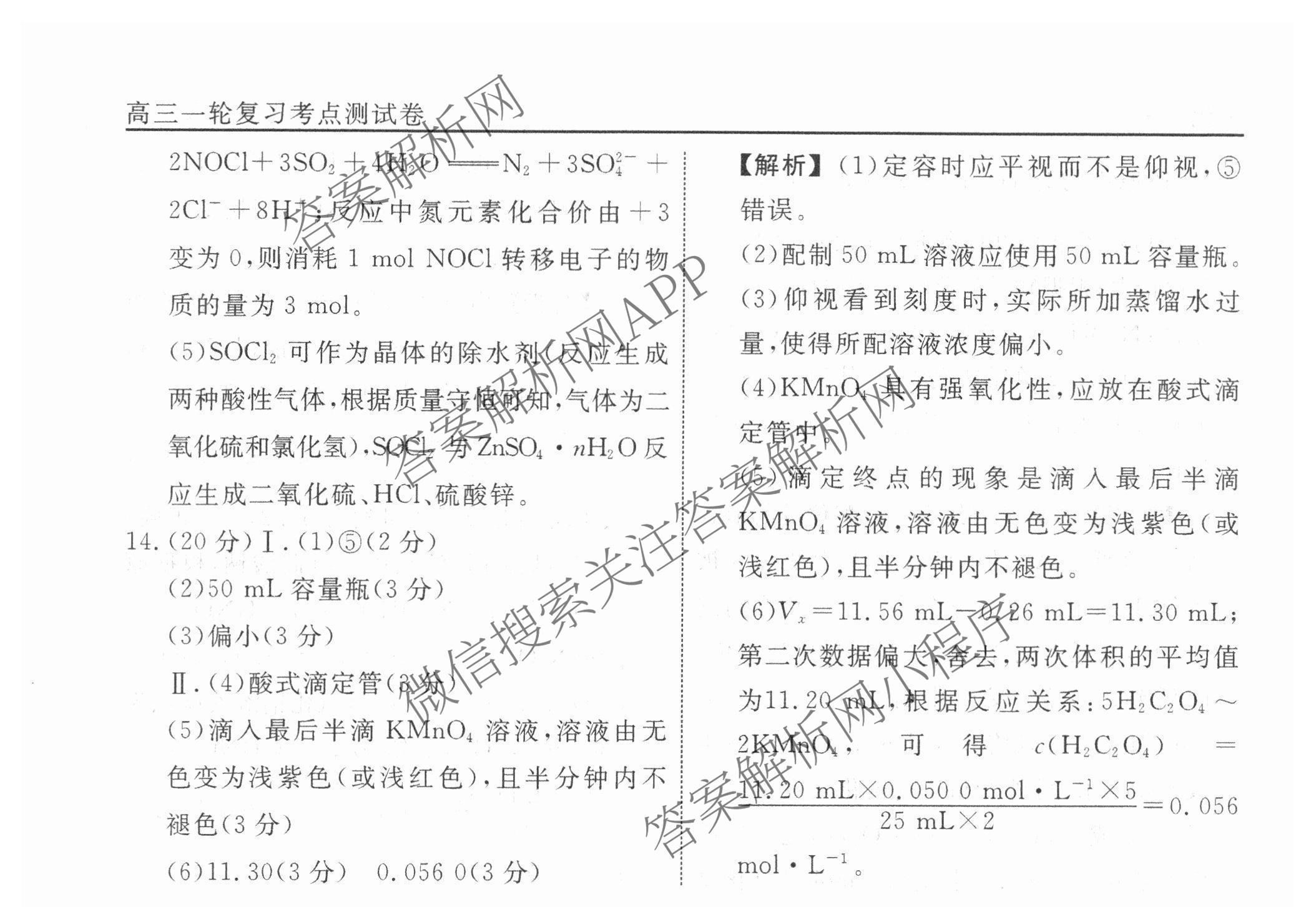 衡水名师卷2024-2025学年度高三一轮复习考点测试卷化学(40分钟空心菱形)(三)3答案