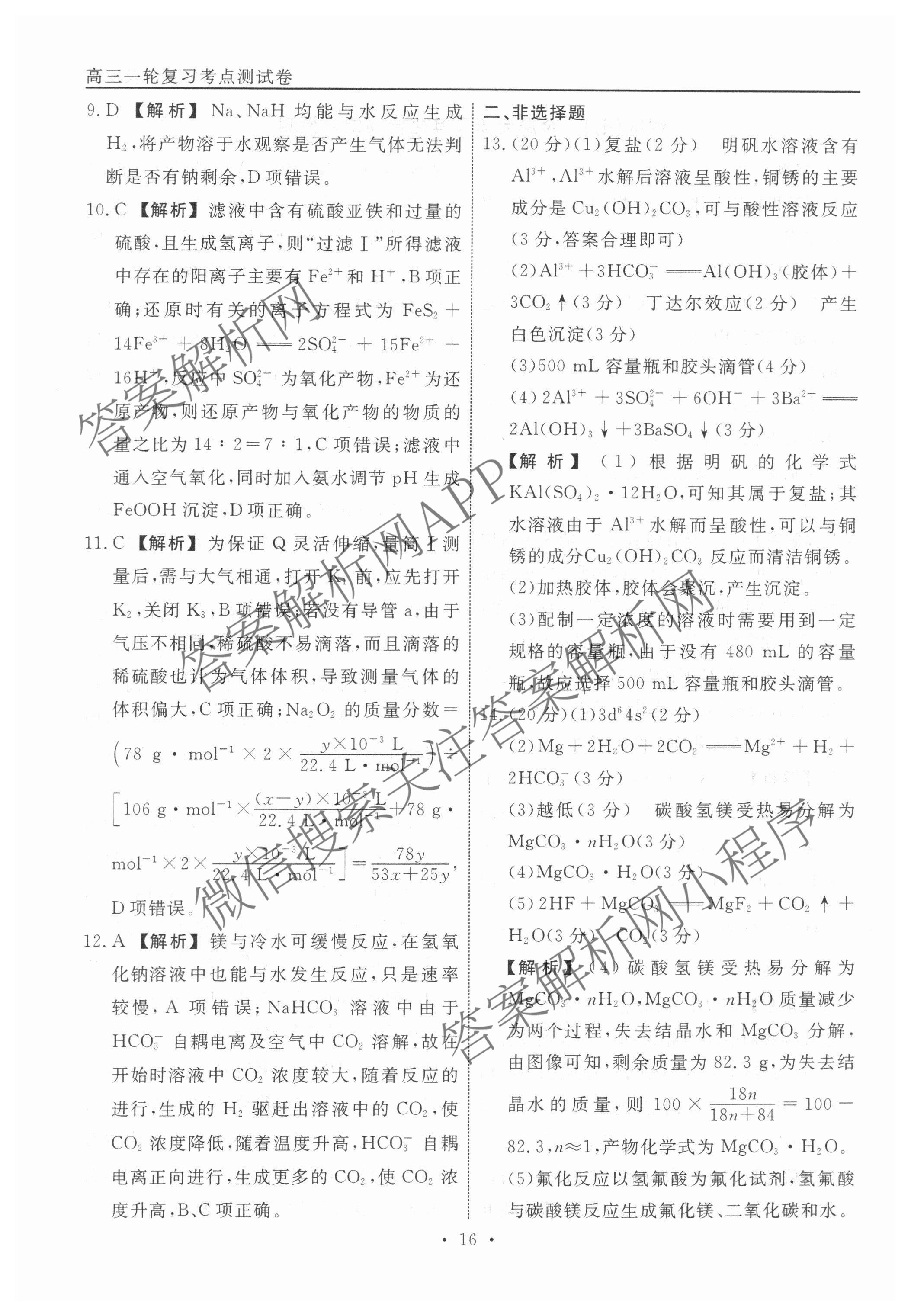衡水名师卷2024-2025学年度高三一轮复习考点测试卷化学(40分钟空心菱形)(七)7答案