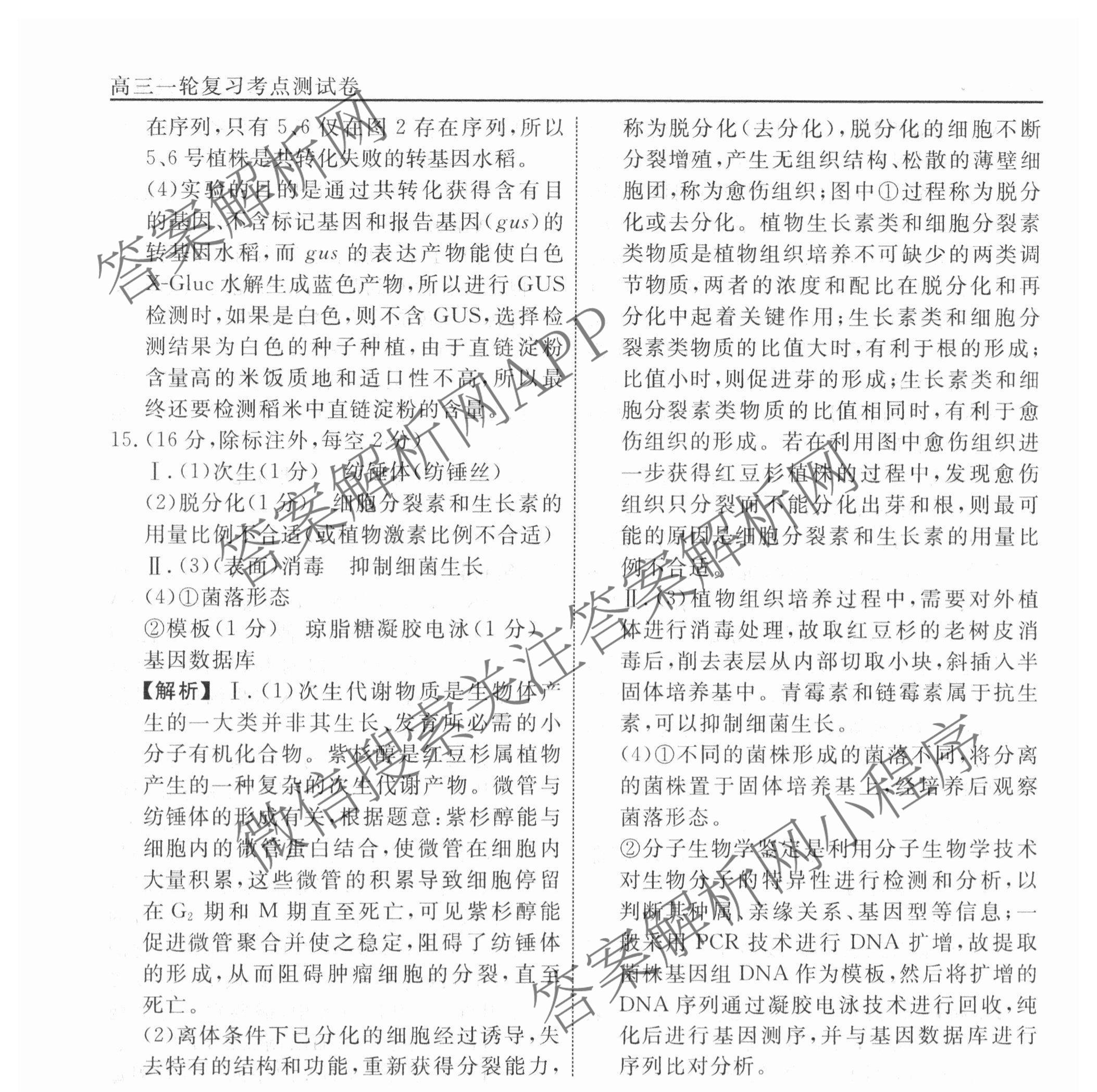 衡水名师卷2024-2025学年度高三一轮复习考点测试卷生物(40分钟实心菱形)(二十八)28答案