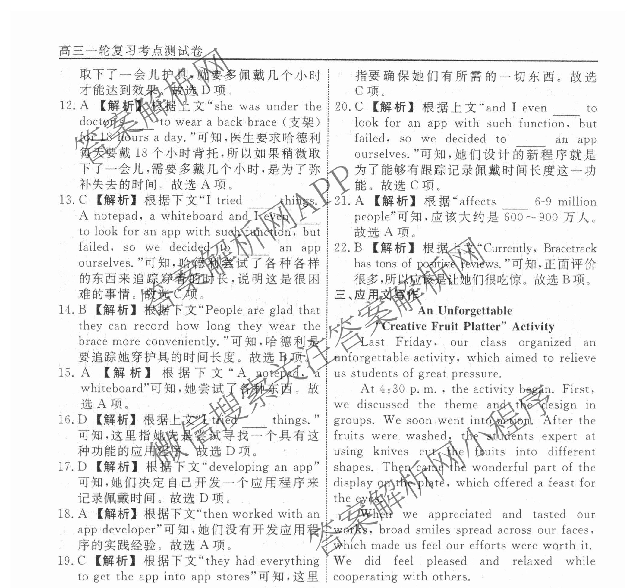 衡水名师卷2024-2025学年度高三一轮复习考点测试卷英语(40分钟空心菱形)(十二)12答案