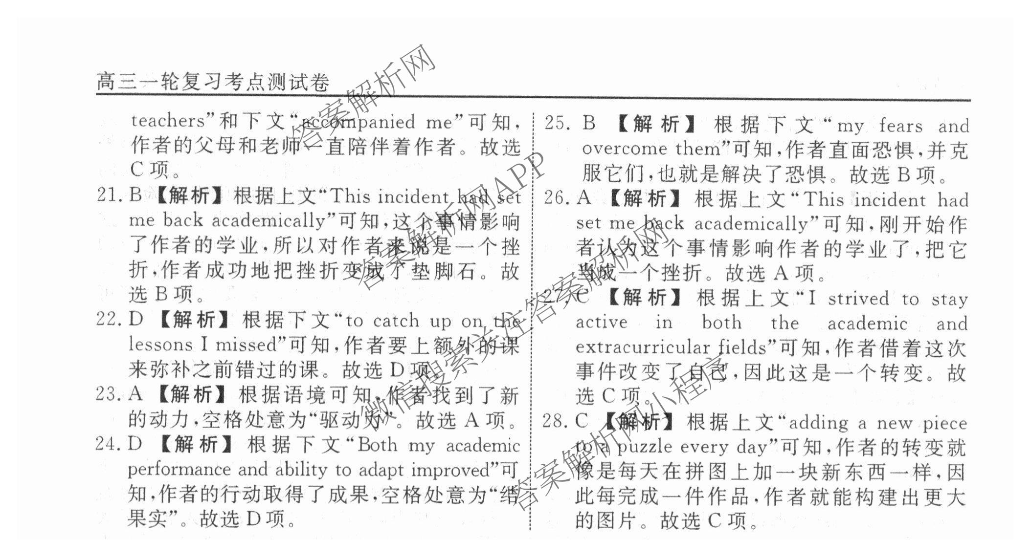 衡水名师卷·2024-2025学年度高三一轮复习考点测试卷·英语(40分钟·空心菱形)(十三)13答案,目前分科卷答案网已经汇总了衡水名师卷·2024-2025学年度高三一轮复习考点测试卷·英语(40分钟·空心菱形)(十三)13答案的各科答案和试卷,获取更多衡水名师卷答案解析,请在关注本站。