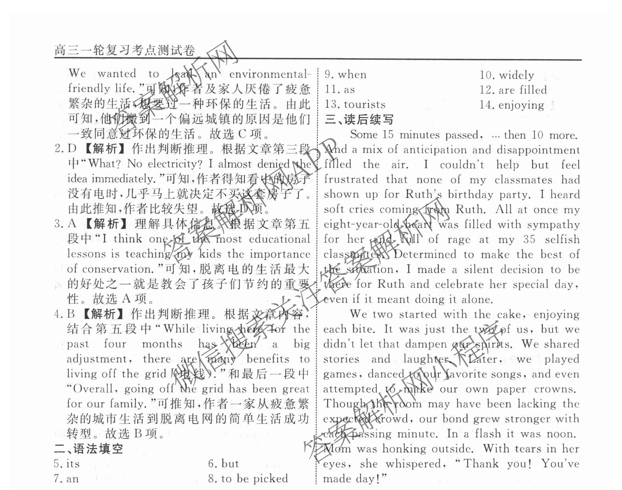 衡水名师卷2024-2025学年度高三一轮复习考点测试卷英语(40分钟空心菱形)(二十一)21答案