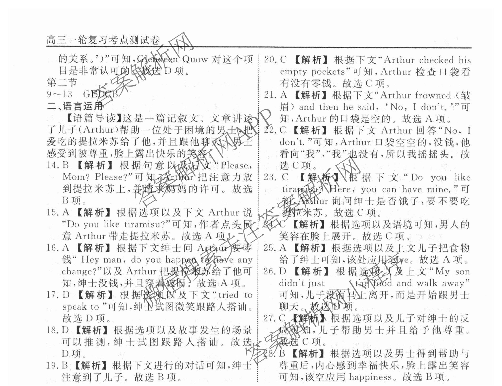 衡水名师卷2024-2025学年度高三一轮复习考点测试卷英语(40分钟空心菱形)(二十五)25答案