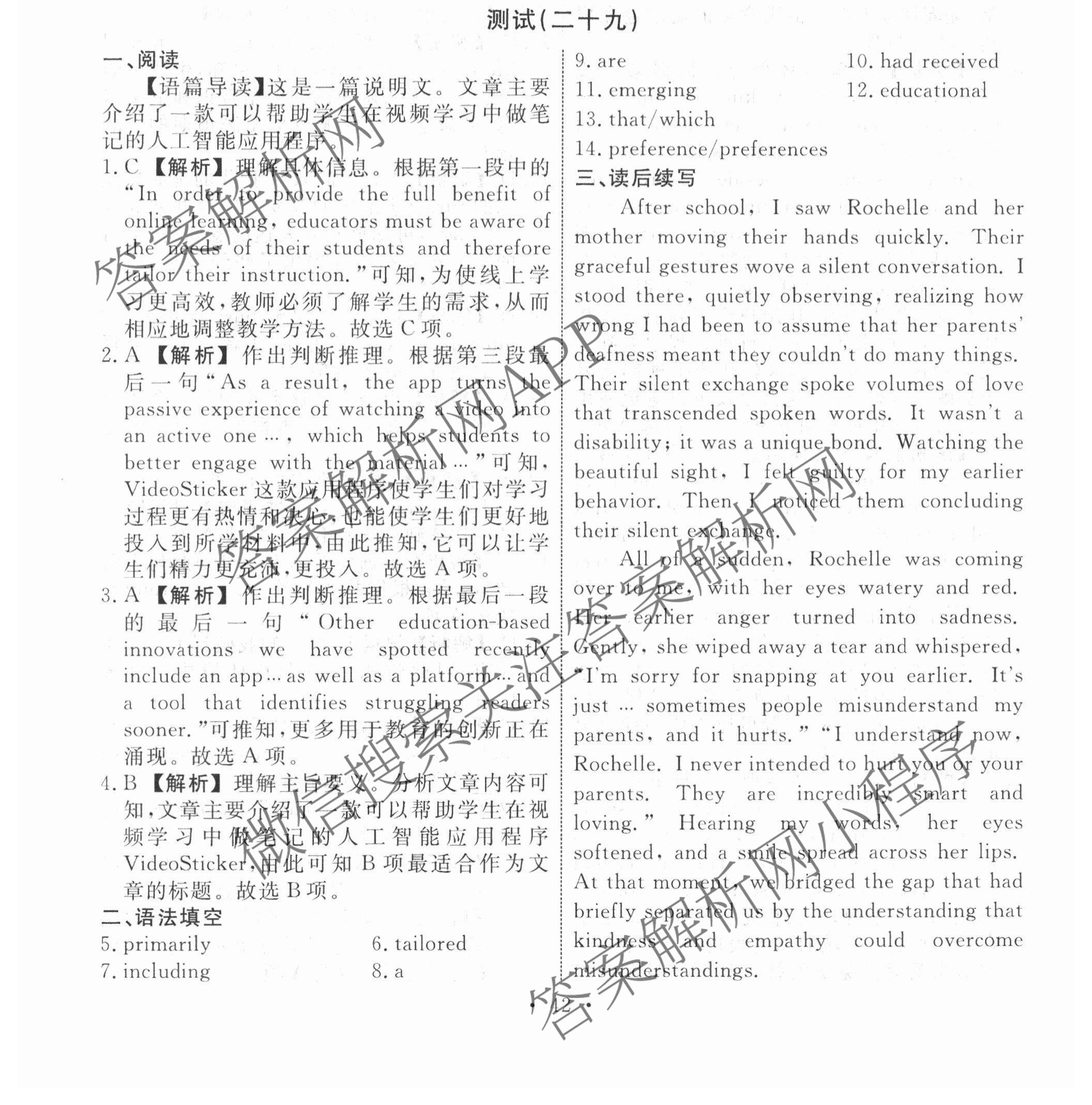 衡水名师卷2024-2025学年度高三一轮复习考点测试卷英语(40分钟空心菱形)(二十九)29答案