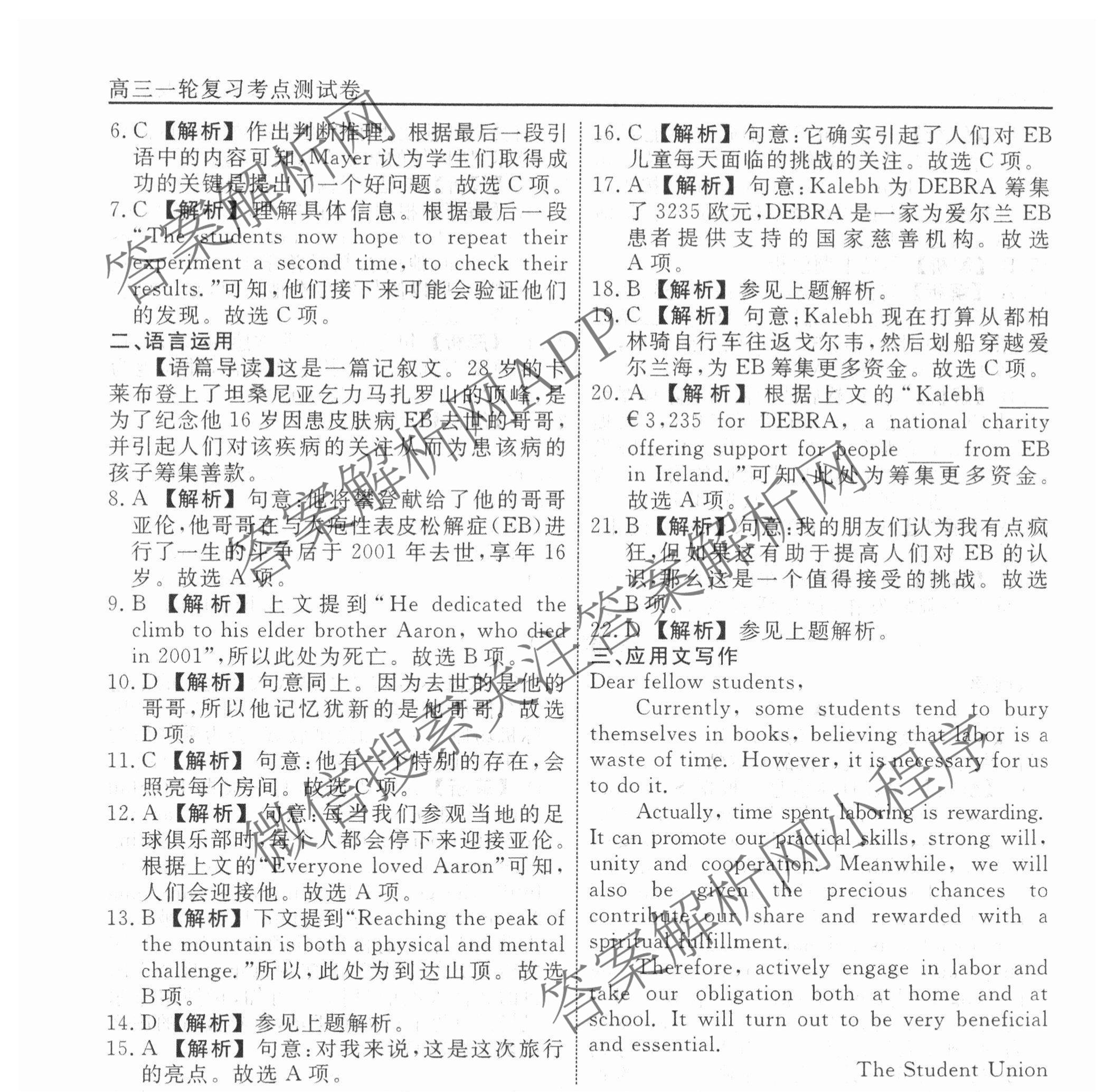 衡水名师卷2024-2025学年度高三一轮复习考点测试卷英语(40分钟空心菱形)(三)3答案