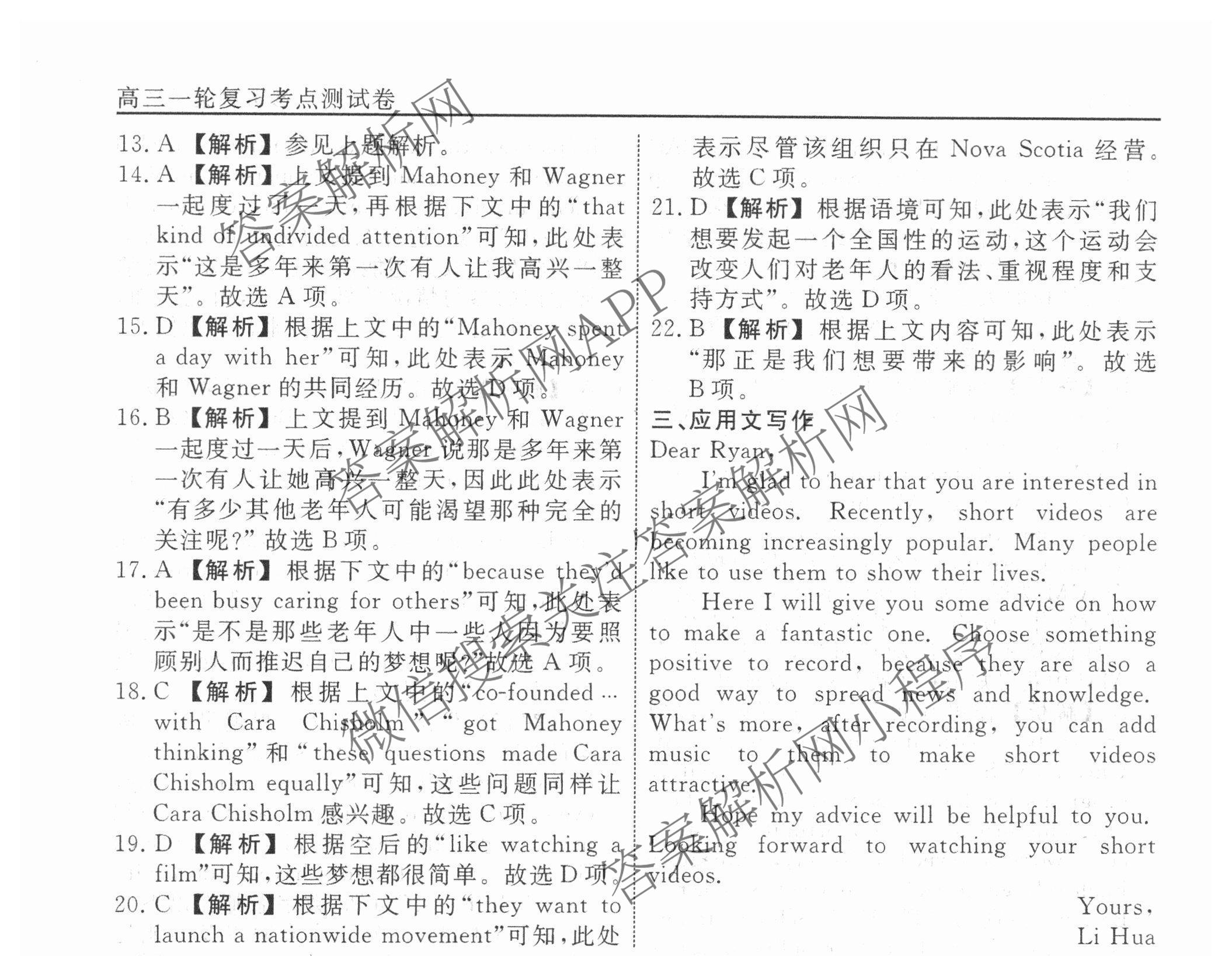 衡水名师卷2024-2025学年度高三一轮复习考点测试卷英语(40分钟空心菱形)(七)7答案