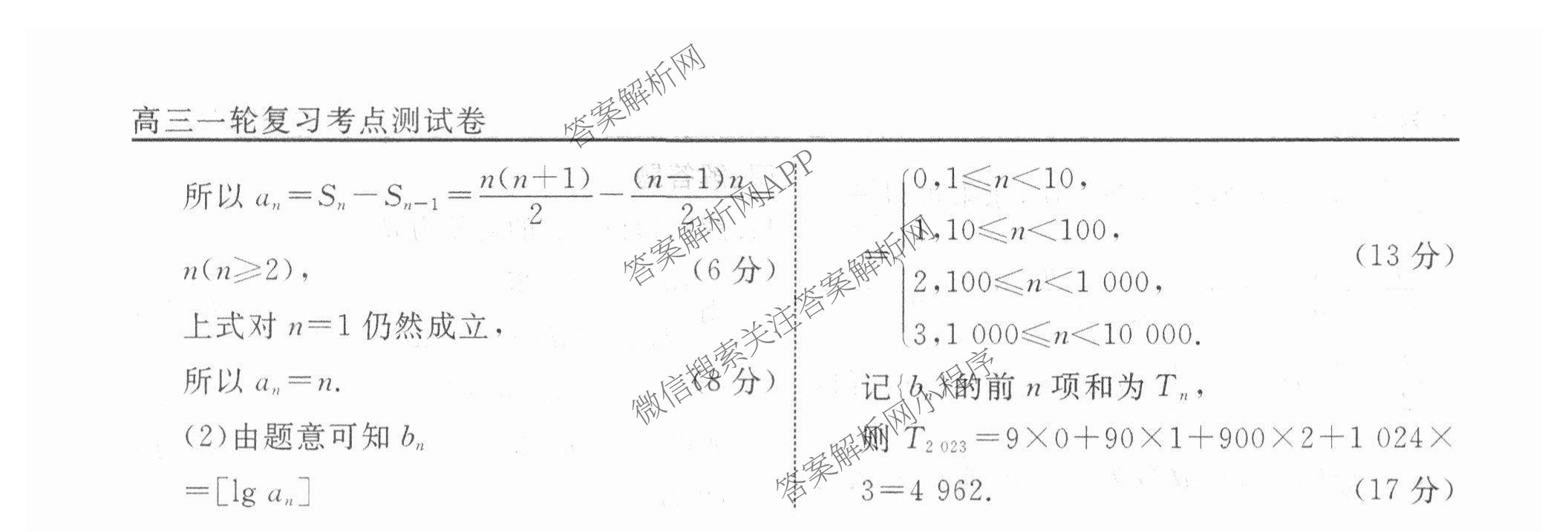 衡水名师卷2024-2025学年度高三一轮复习考点测试卷数学(40分钟空心菱形)(十五)15答案