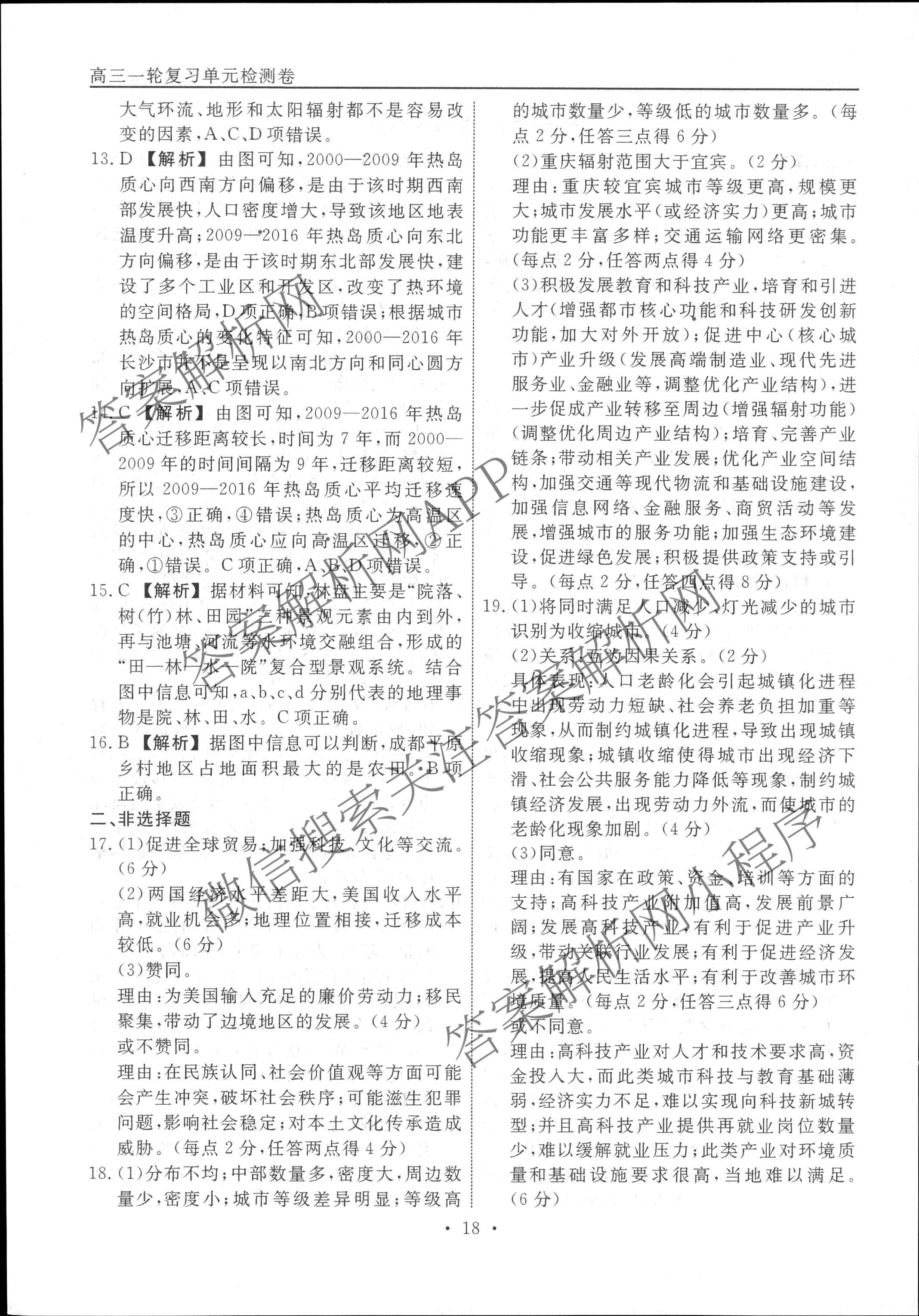 衡水名师卷2024-2025学年度高三一轮复习单元检测卷地理(空心菱形)检测(十)10答案
