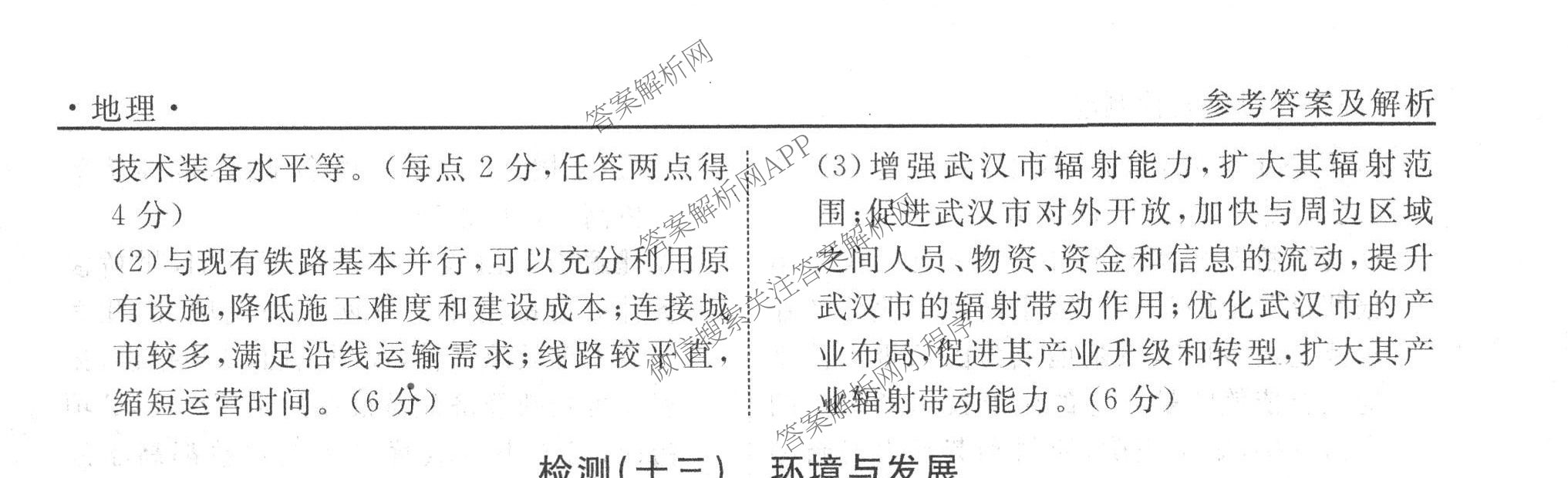 衡水名师卷2024-2025学年度高三一轮复习单元检测卷地理(空心菱形)检测(十二)12答案