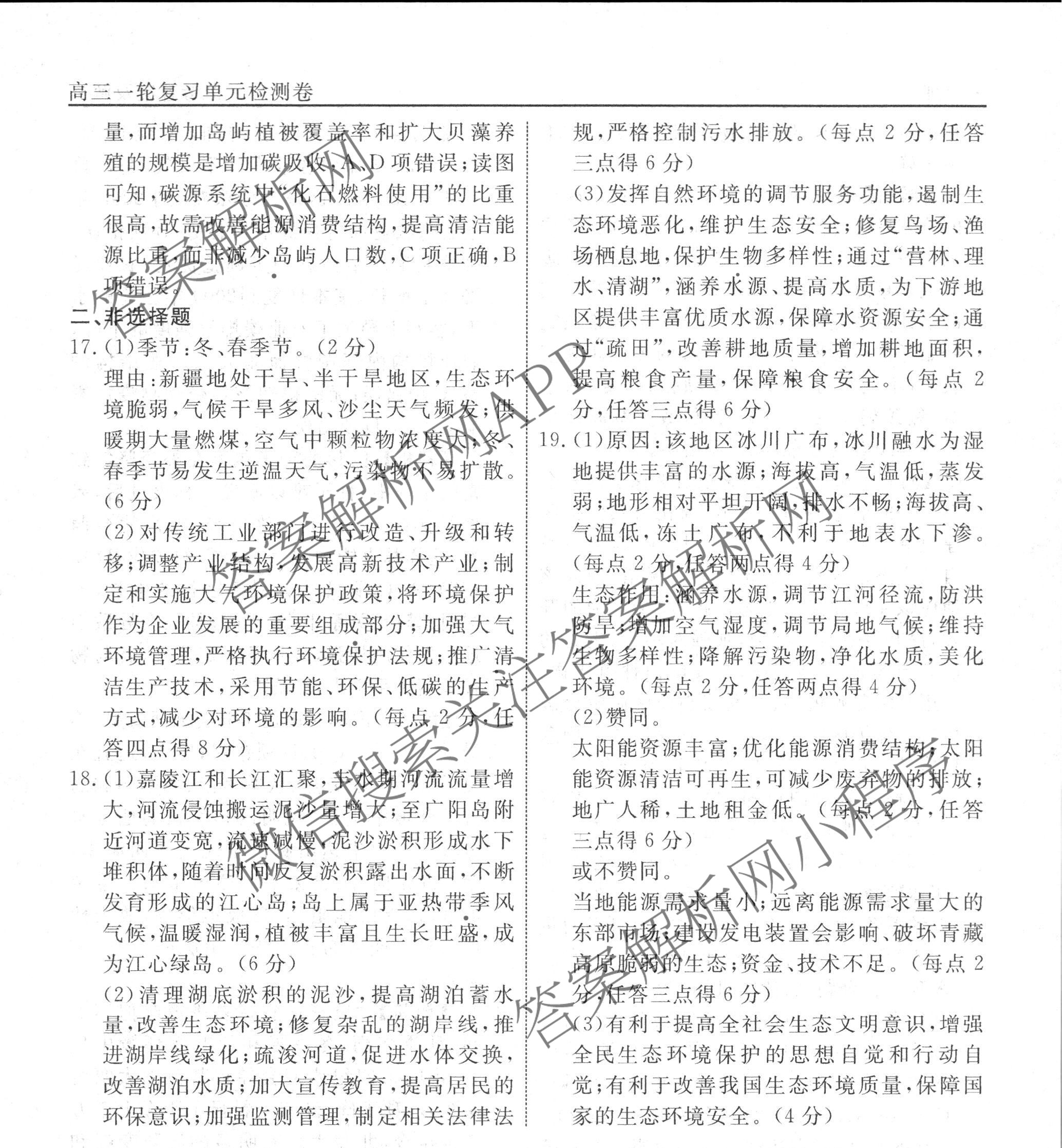 衡水名师卷2024-2025学年度高三一轮复习单元检测卷地理(空心菱形)检测(十八)18答案