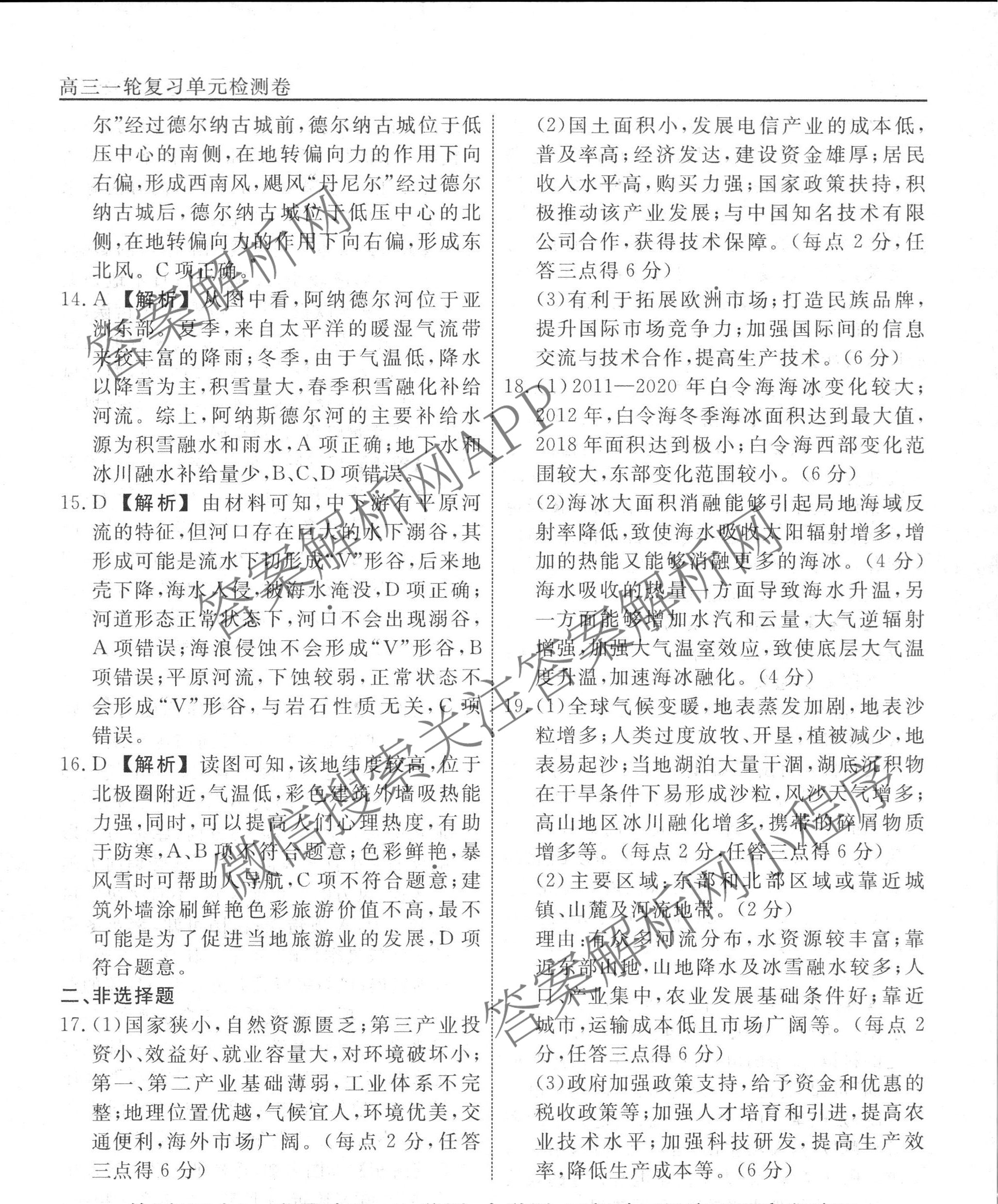 衡水名师卷2024-2025学年度高三一轮复习单元检测卷地理(空心菱形)检测(十九)19答案