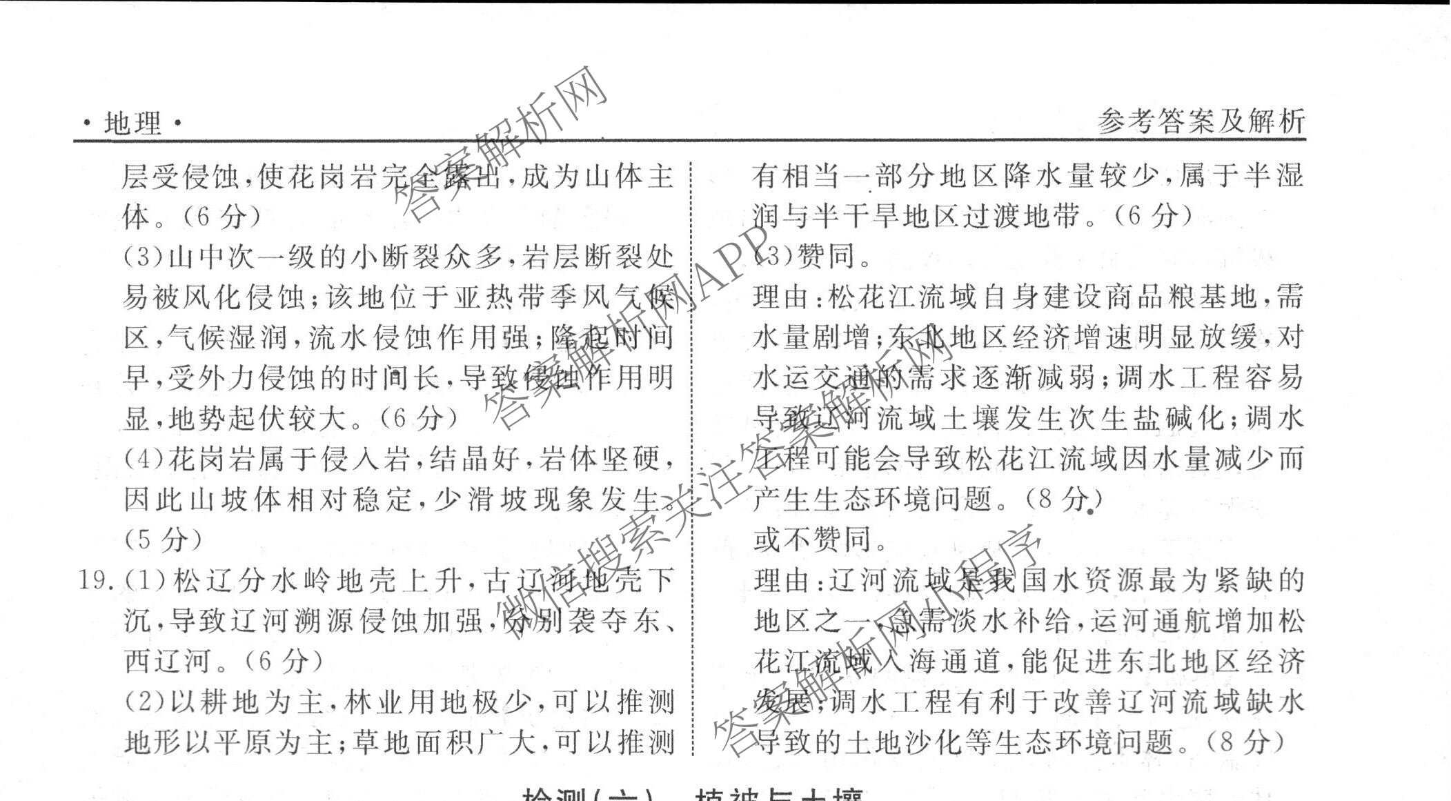 衡水名师卷2024-2025学年度高三一轮复习单元检测卷地理(空心菱形)检测(五)5答案