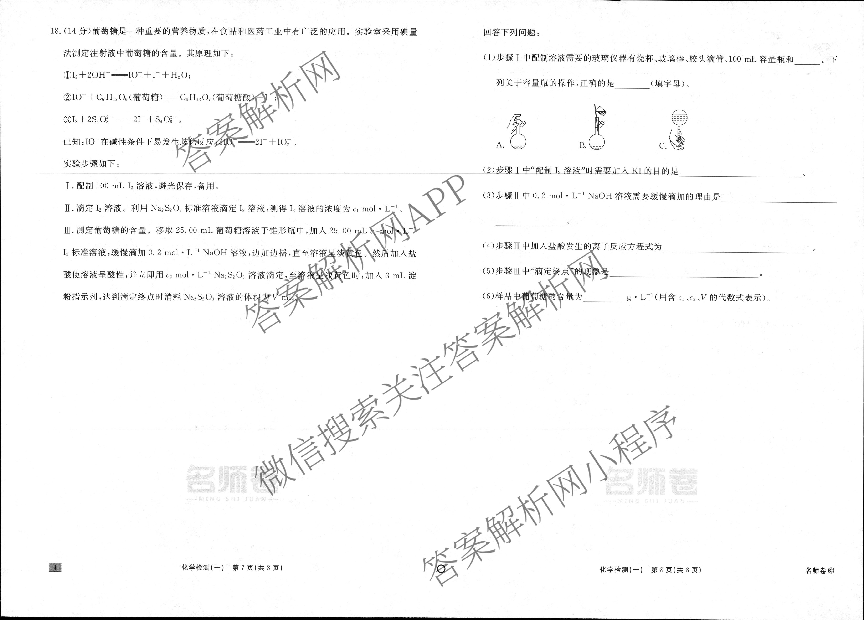 衡水名师卷·2024-2025学年度高三一轮复习单元检测卷·化学(圆圈)·检测(一)1试题,目前分科卷答案网已经汇总了衡水名师卷·2024-2025学年度高三一轮复习单元检测卷·化学(圆圈)·检测(一)1试题的各科答案和试卷,获取更多衡水名师卷答案解析,请在关注本站。