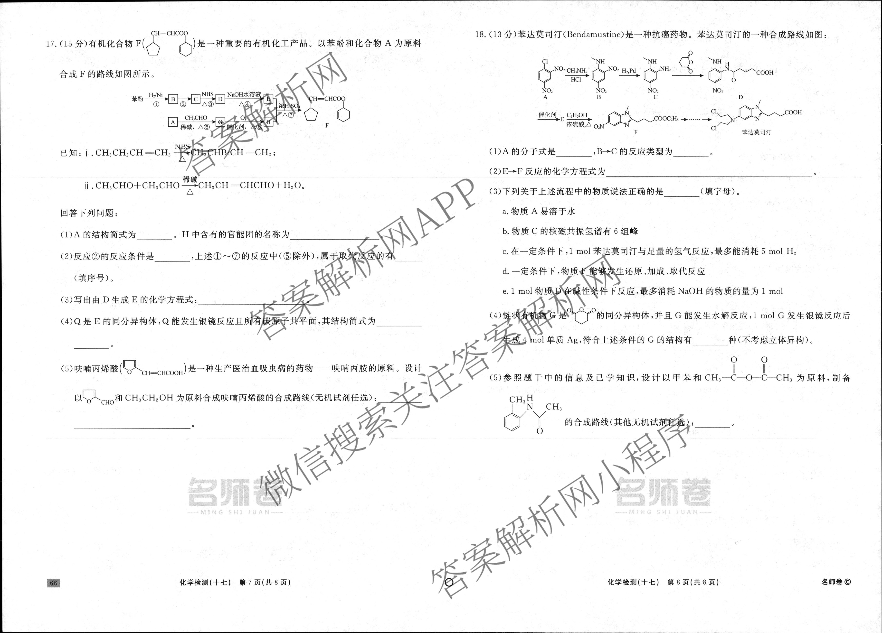 衡水名师卷·2024-2025学年度高三一轮复习单元检测卷·化学(圆圈)·检测(十七)17试题,目前分科卷答案网已经汇总了衡水名师卷·2024-2025学年度高三一轮复习单元检测卷·化学(圆圈)·检测(十七)17试题的各科答案和试卷,获取更多衡水名师卷答案解析,请在关注本站。
