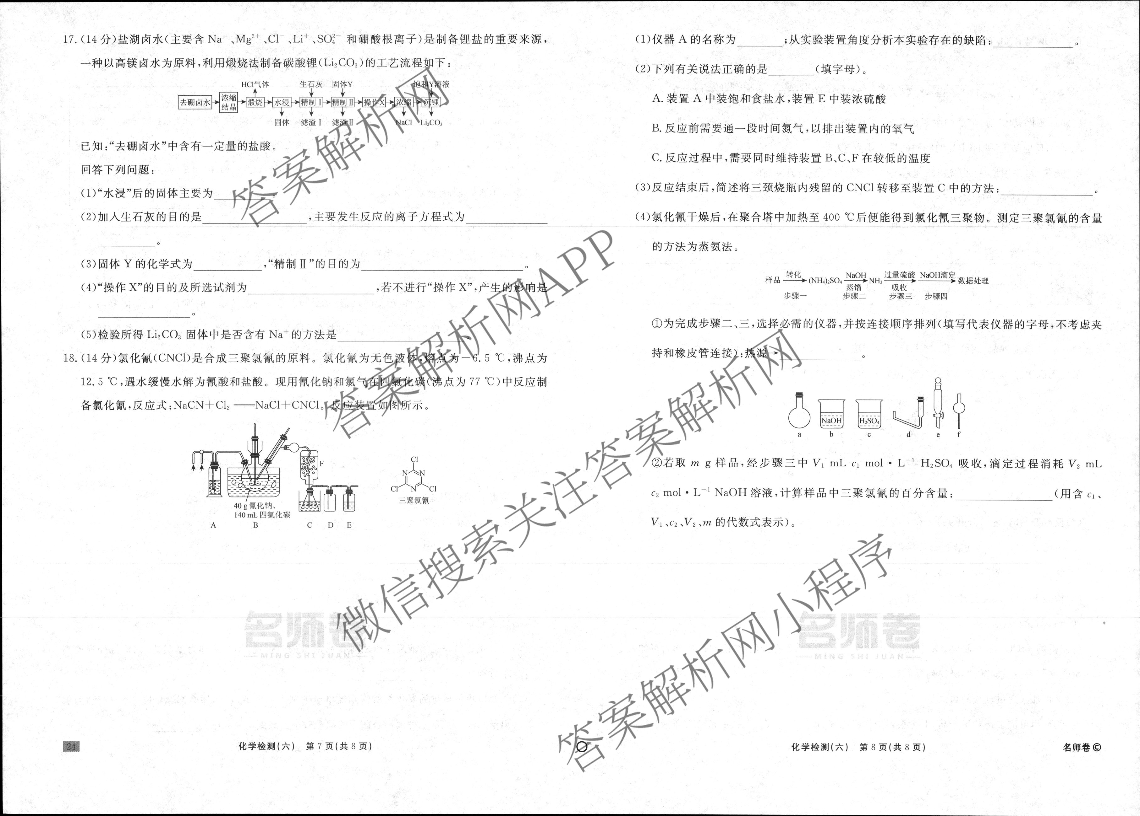 衡水名师卷·2024-2025学年度高三一轮复习单元检测卷·化学(圆圈)·检测(六)6试题,目前分科卷答案网已经汇总了衡水名师卷·2024-2025学年度高三一轮复习单元检测卷·化学(圆圈)·检测(六)6试题的各科答案和试卷,获取更多衡水名师卷答案解析,请在关注本站。