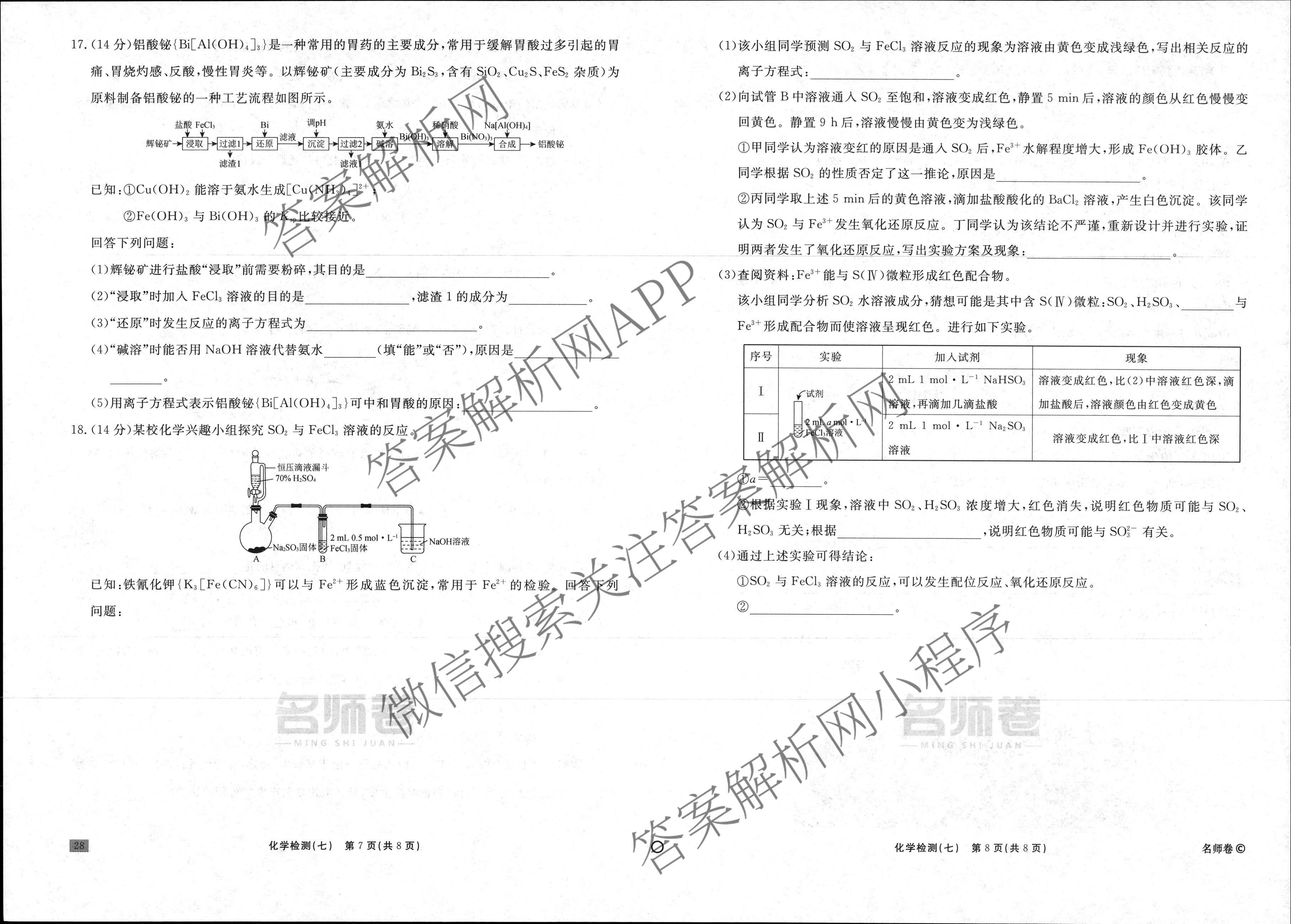 衡水名师卷·2024-2025学年度高三一轮复习单元检测卷·化学(圆圈)·检测(七)7试题,目前分科卷答案网已经汇总了衡水名师卷·2024-2025学年度高三一轮复习单元检测卷·化学(圆圈)·检测(七)7试题的各科答案和试卷,获取更多衡水名师卷答案解析,请在关注本站。