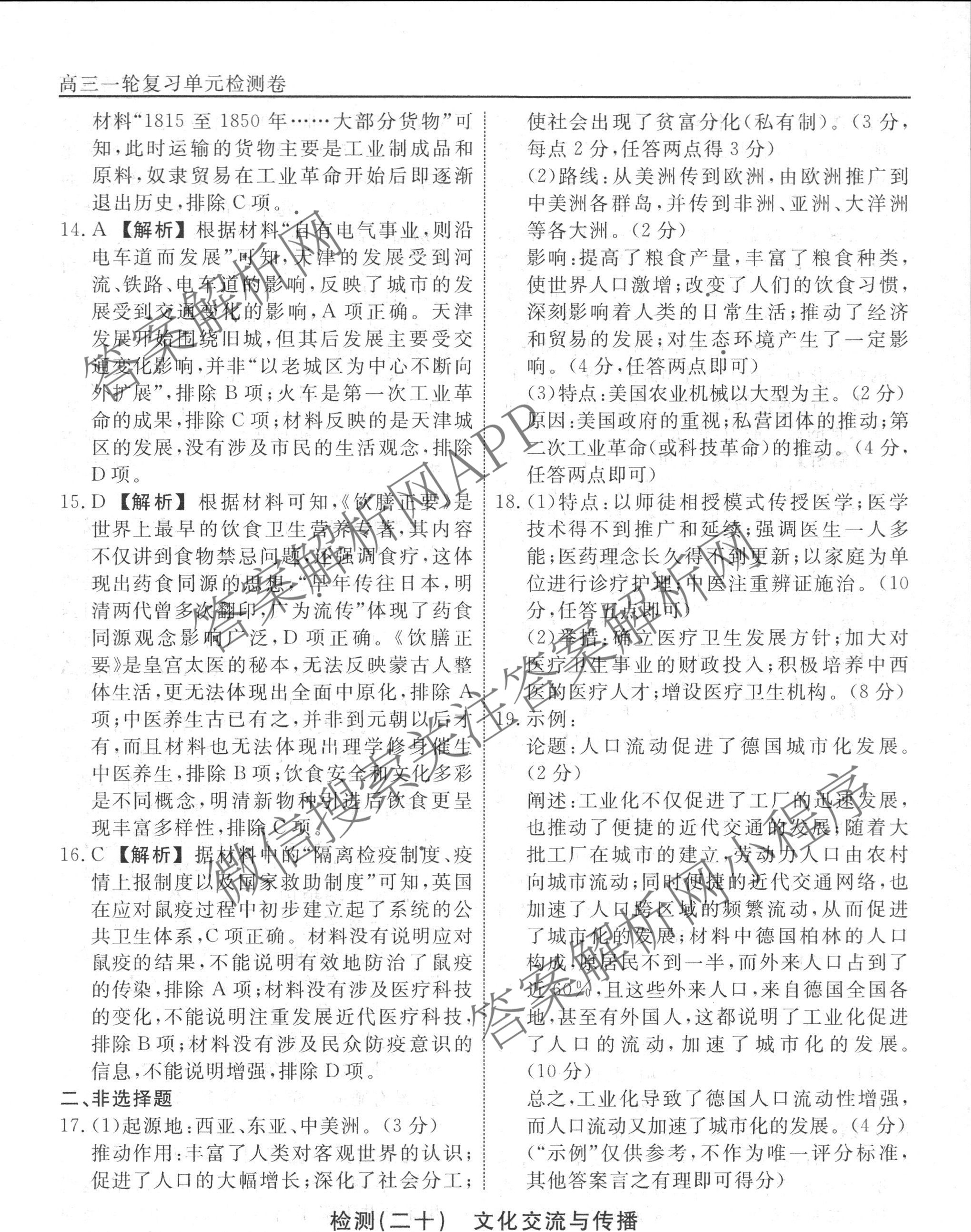 衡水名师卷2024-2025学年度高三一轮复习单元检测卷历史(双菱形)检测(十九)19答案