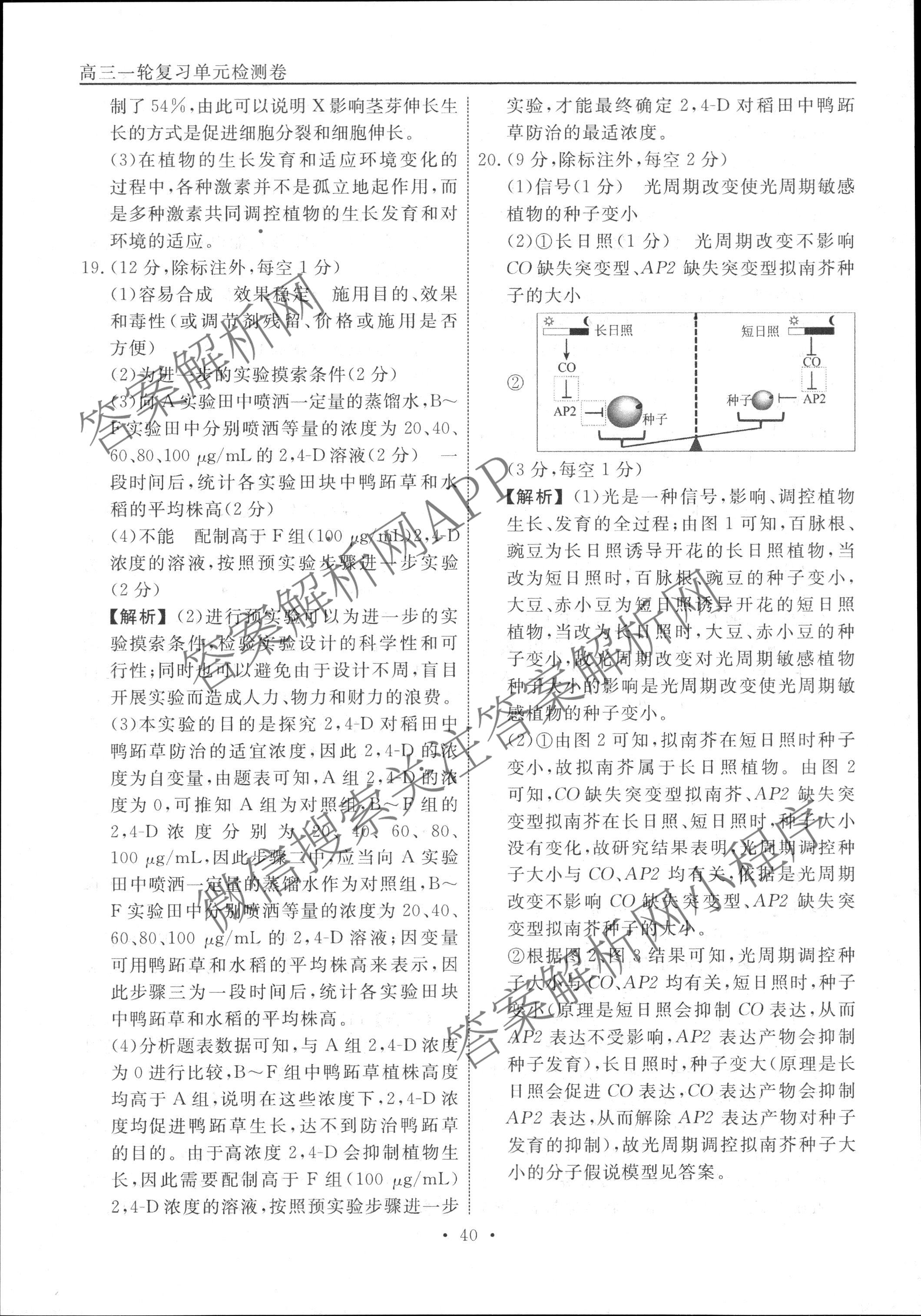 衡水名师卷2024-2025学年度高三一轮复习单元检测卷生物(实心圆)检测(十)10答案