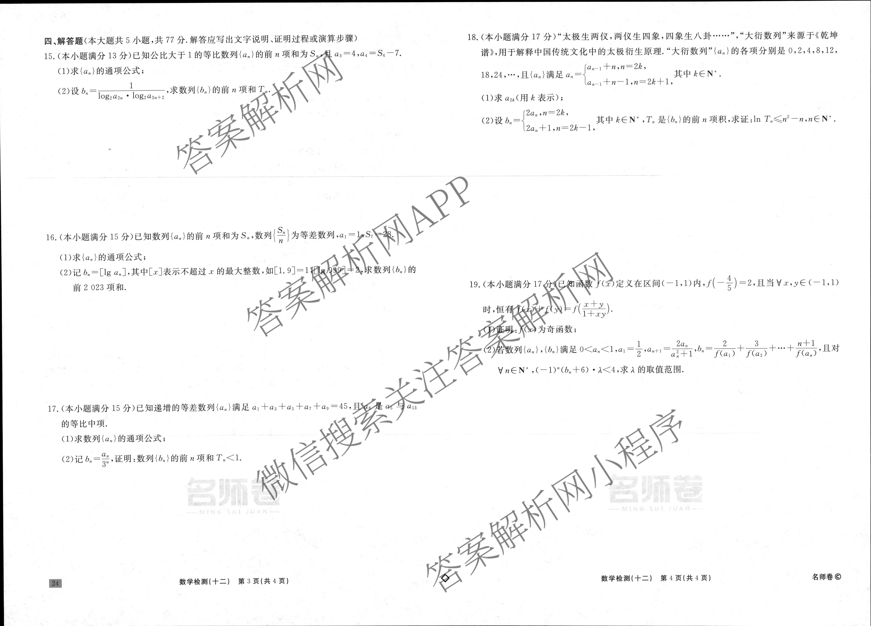 衡水名师卷·2024-2025学年度高三一轮复习单元检测卷·数学(空心菱形)·检测(十二)12试题,目前分科卷答案网已经汇总了衡水名师卷·2024-2025学年度高三一轮复习单元检测卷·数学(空心菱形)·检测(十二)12试题的各科答案和试卷,获取更多衡水名师卷答案解析,请在关注本站。