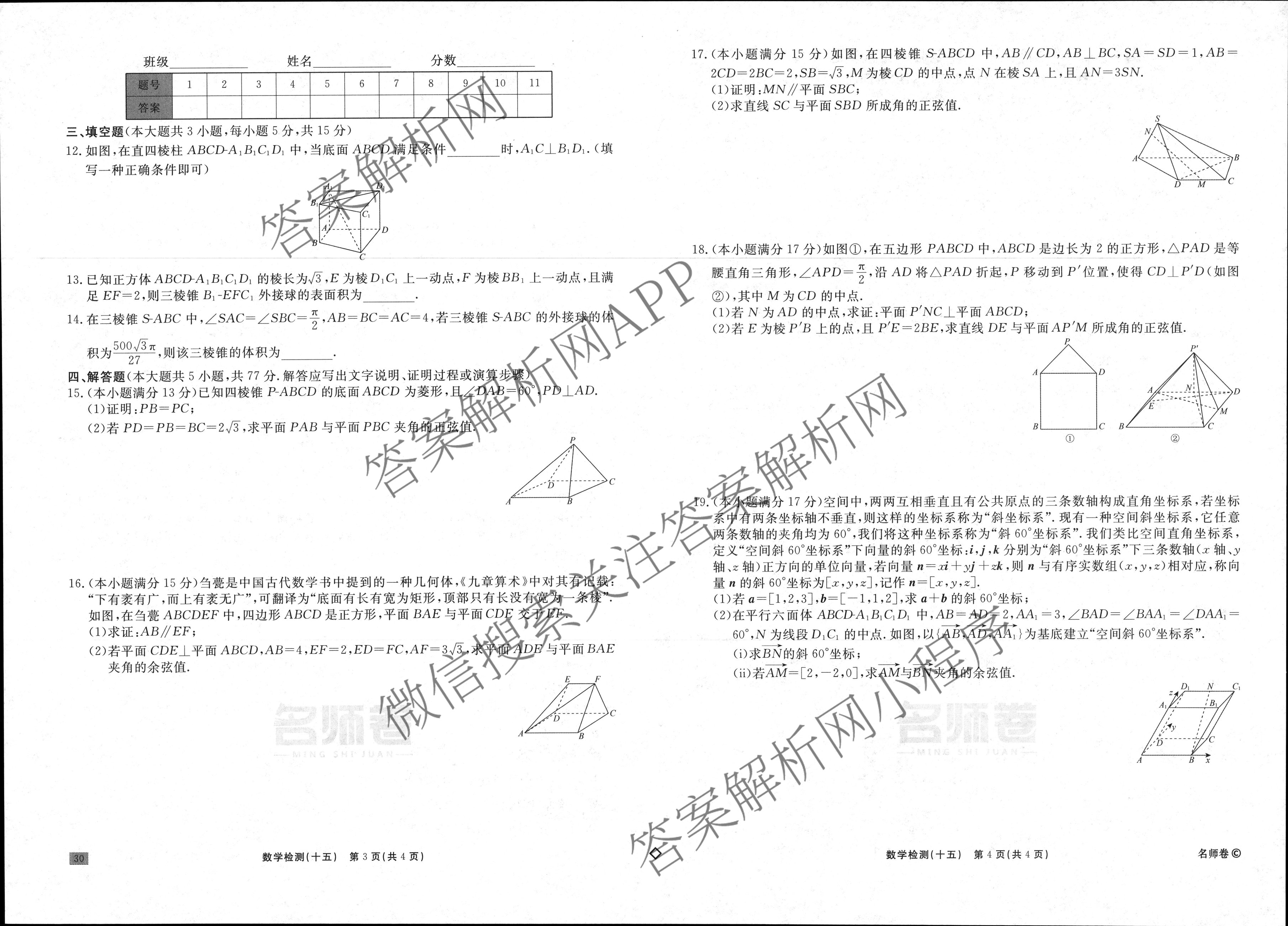 衡水名师卷·2024-2025学年度高三一轮复习单元检测卷·数学(空心菱形)·检测(十五)15试题,目前分科卷答案网已经汇总了衡水名师卷·2024-2025学年度高三一轮复习单元检测卷·数学(空心菱形)·检测(十五)15试题的各科答案和试卷,获取更多衡水名师卷答案解析,请在关注本站。