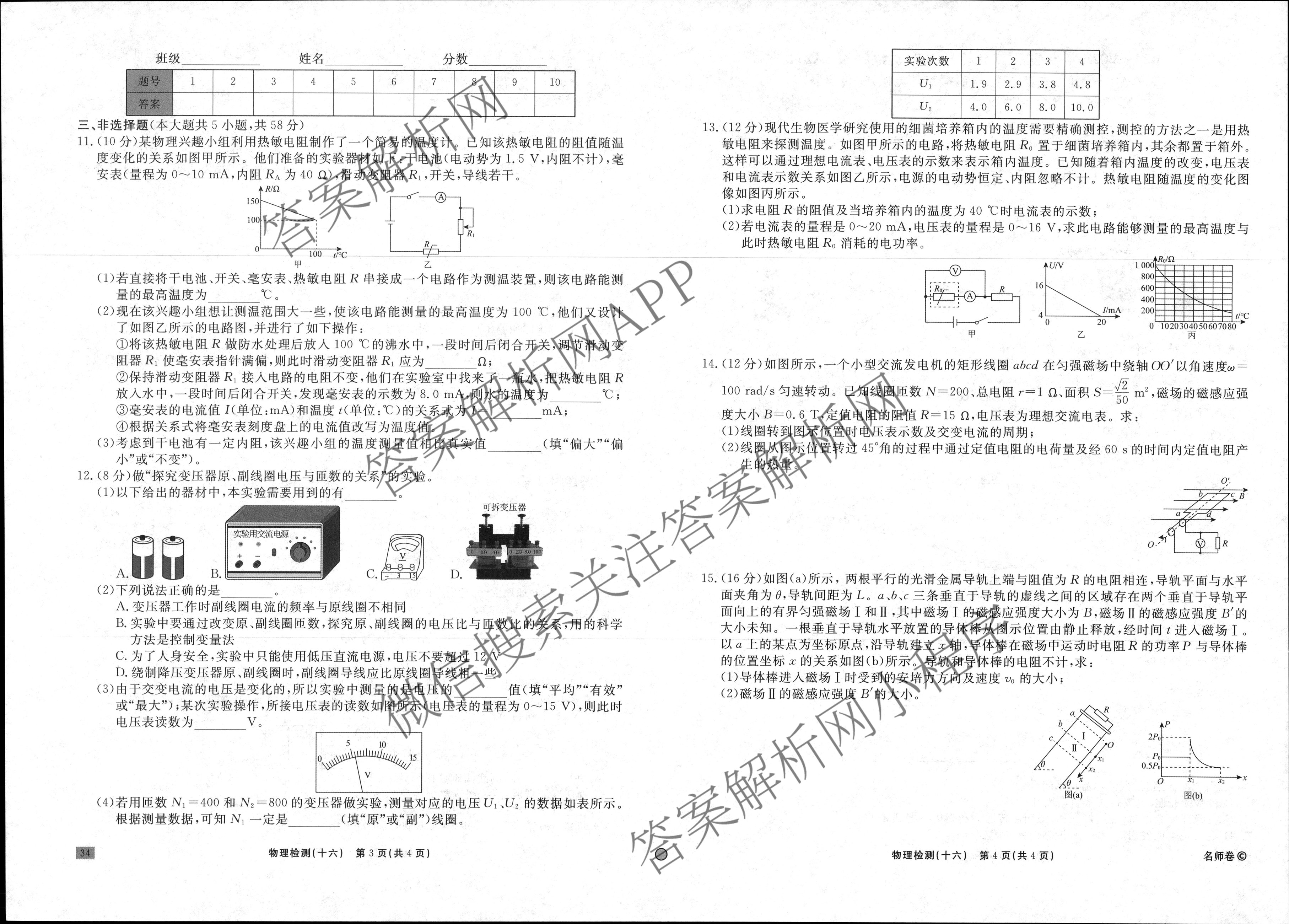 衡水名师卷·2024-2025学年度高三一轮复习单元检测卷·物理(实心圆)·检测(十六)16试题,目前分科卷答案网已经汇总了衡水名师卷·2024-2025学年度高三一轮复习单元检测卷·物理(实心圆)·检测(十六)16试题的各科答案和试卷,获取更多衡水名师卷答案解析,请在关注本站。