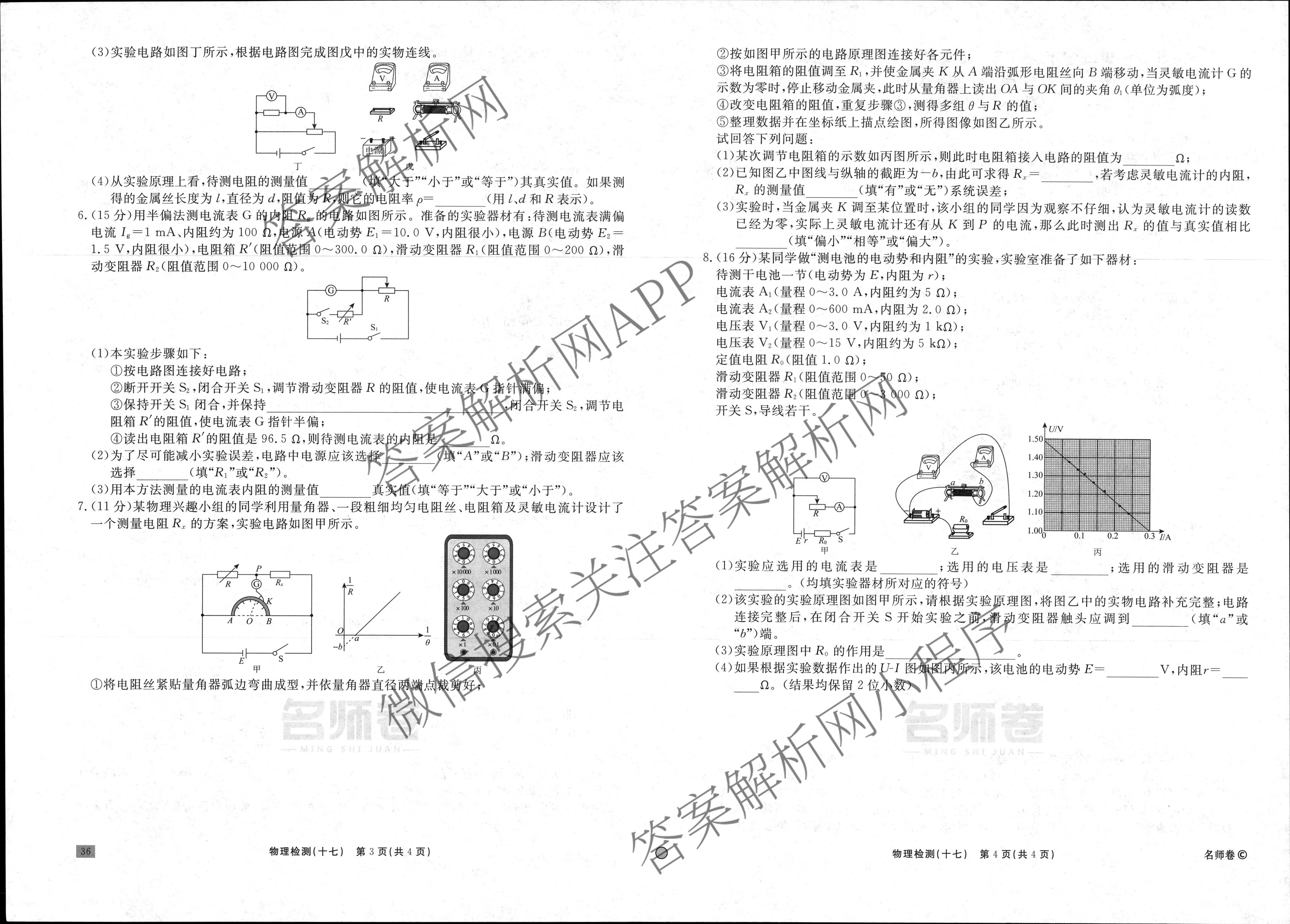 衡水名师卷·2024-2025学年度高三一轮复习单元检测卷·物理(实心圆)·检测(十七)17试题,目前分科卷答案网已经汇总了衡水名师卷·2024-2025学年度高三一轮复习单元检测卷·物理(实心圆)·检测(十七)17试题的各科答案和试卷,获取更多衡水名师卷答案解析,请在关注本站。
