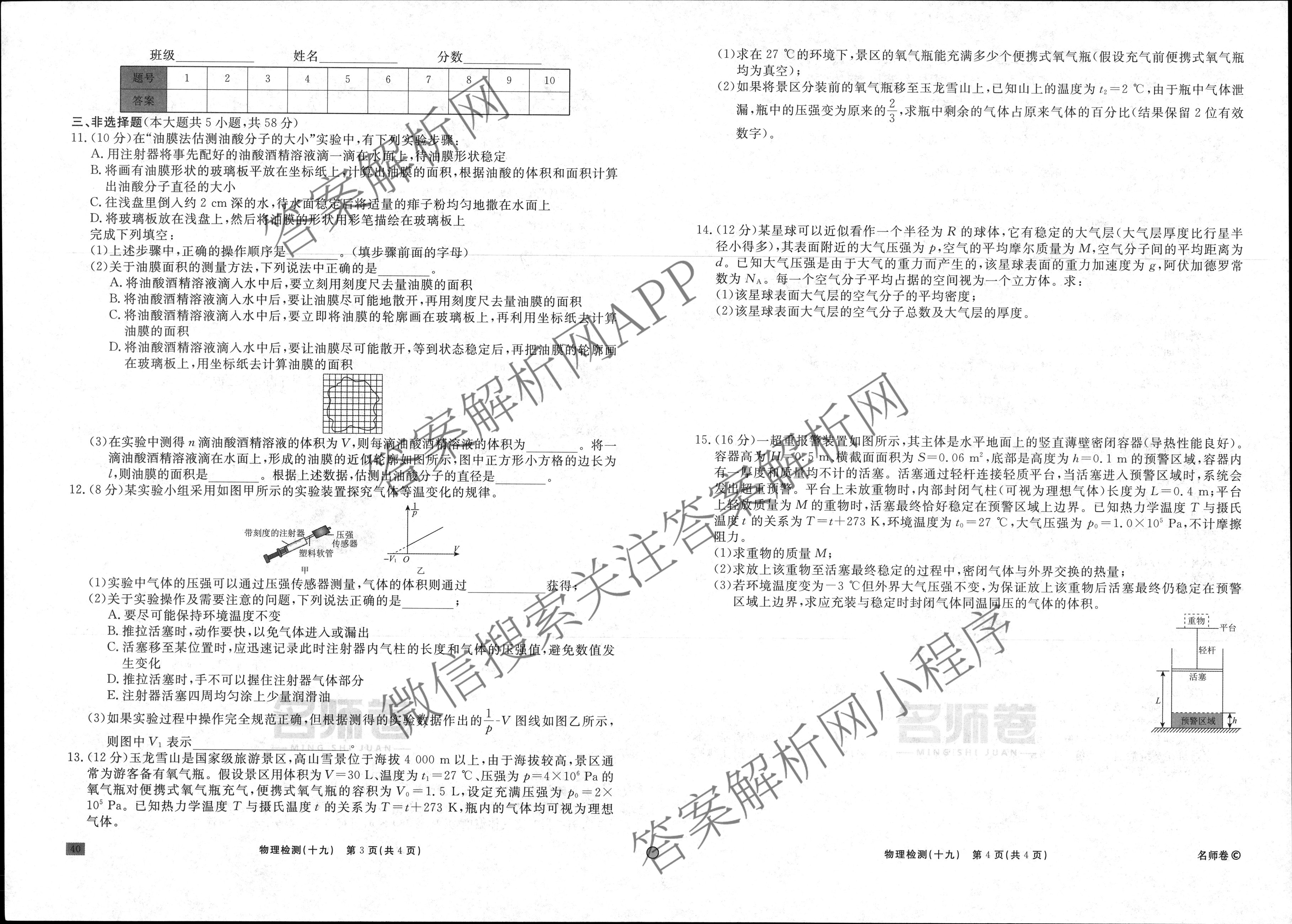 衡水名师卷·2024-2025学年度高三一轮复习单元检测卷·物理(实心圆)·检测(十九)19试题,目前分科卷答案网已经汇总了衡水名师卷·2024-2025学年度高三一轮复习单元检测卷·物理(实心圆)·检测(十九)19试题的各科答案和试卷,获取更多衡水名师卷答案解析,请在关注本站。