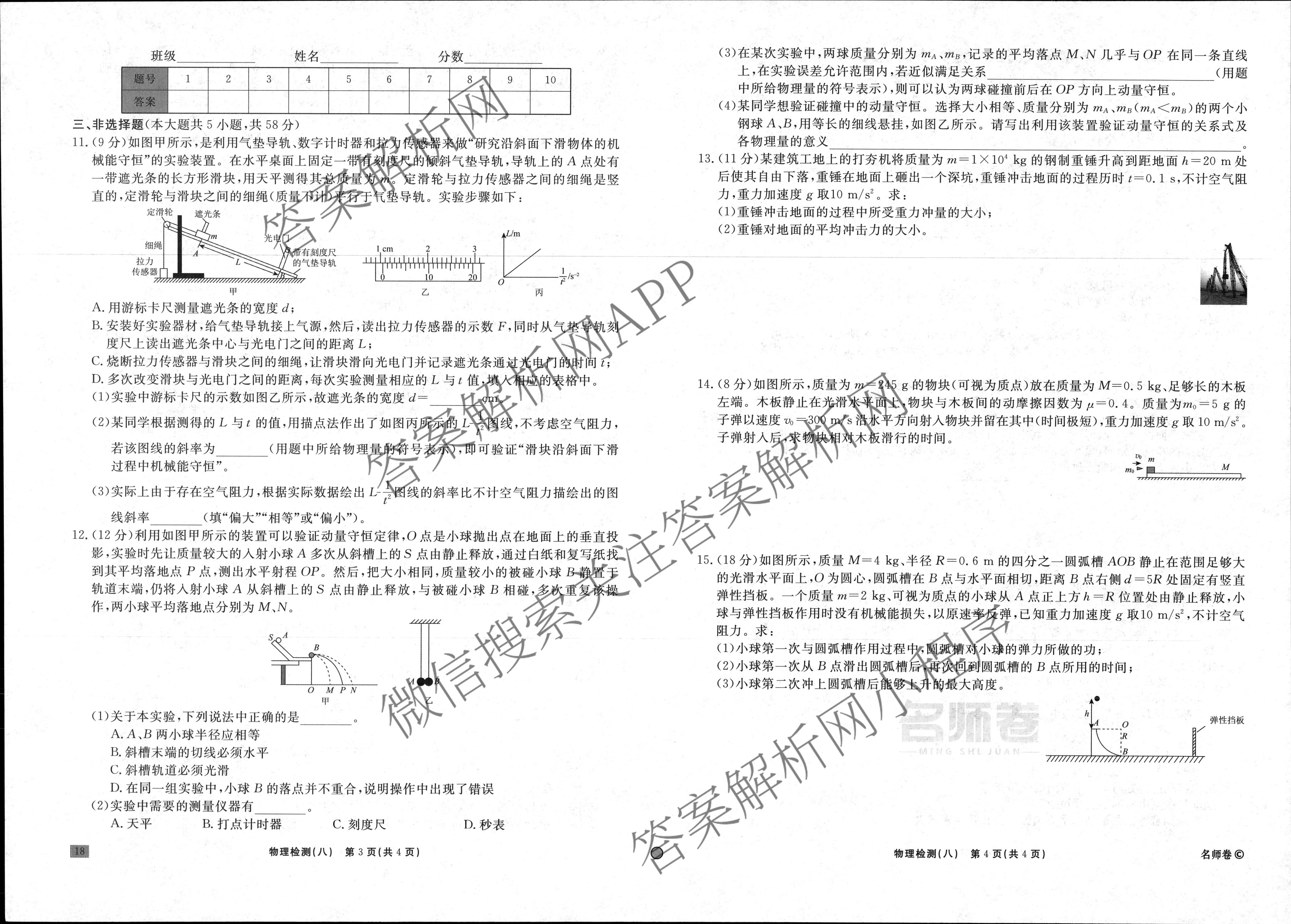 衡水名师卷·2024-2025学年度高三一轮复习单元检测卷·物理(实心圆)·检测(八)8试题,目前分科卷答案网已经汇总了衡水名师卷·2024-2025学年度高三一轮复习单元检测卷·物理(实心圆)·检测(八)8试题的各科答案和试卷,获取更多衡水名师卷答案解析,请在关注本站。