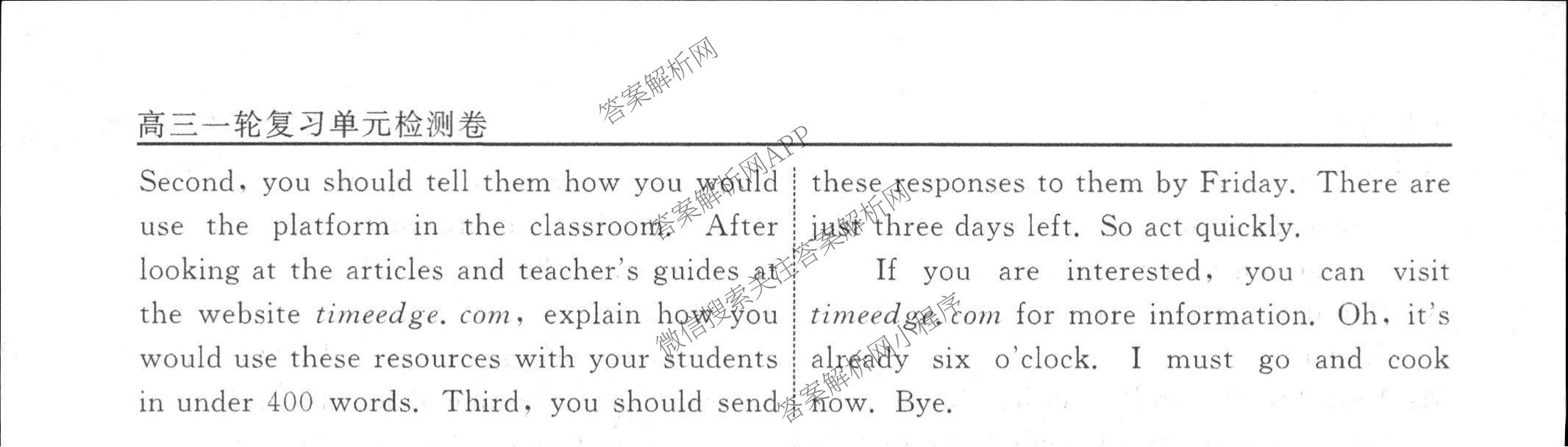 衡水名师卷·2024-2025学年度高三一轮复习单元检测卷·英语(空心菱形)·检测(十九)19答案,目前分科卷答案网已经汇总了衡水名师卷·2024-2025学年度高三一轮复习单元检测卷·英语(空心菱形)·检测(十九)19答案的各科答案和试卷,获取更多衡水名师卷答案解析,请在关注本站。
