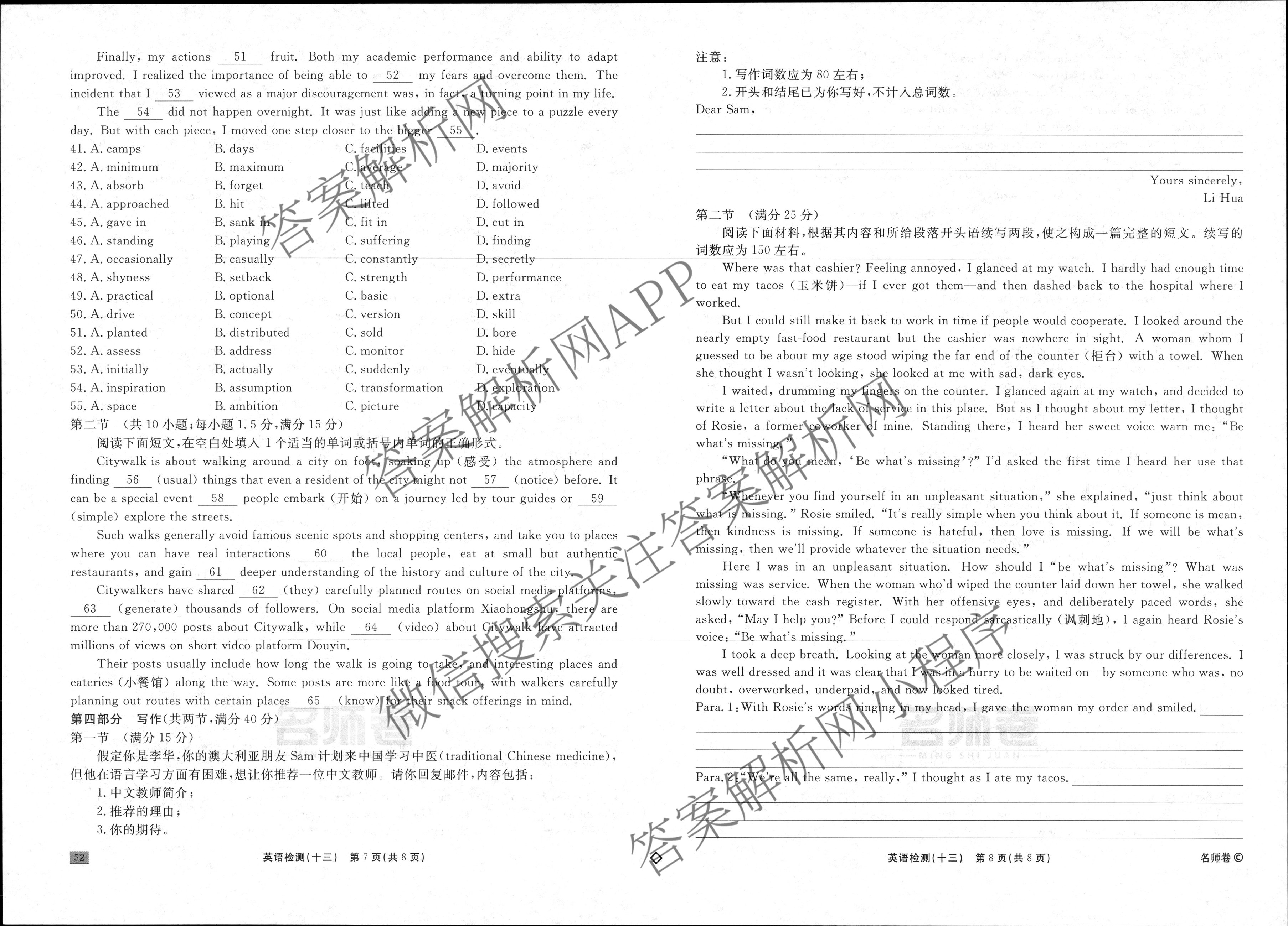 衡水名师卷·2024-2025学年度高三一轮复习单元检测卷·英语(空心菱形)·检测(十三)13试题,目前分科卷答案网已经汇总了衡水名师卷·2024-2025学年度高三一轮复习单元检测卷·英语(空心菱形)·检测(十三)13试题的各科答案和试卷,获取更多衡水名师卷答案解析,请在关注本站。