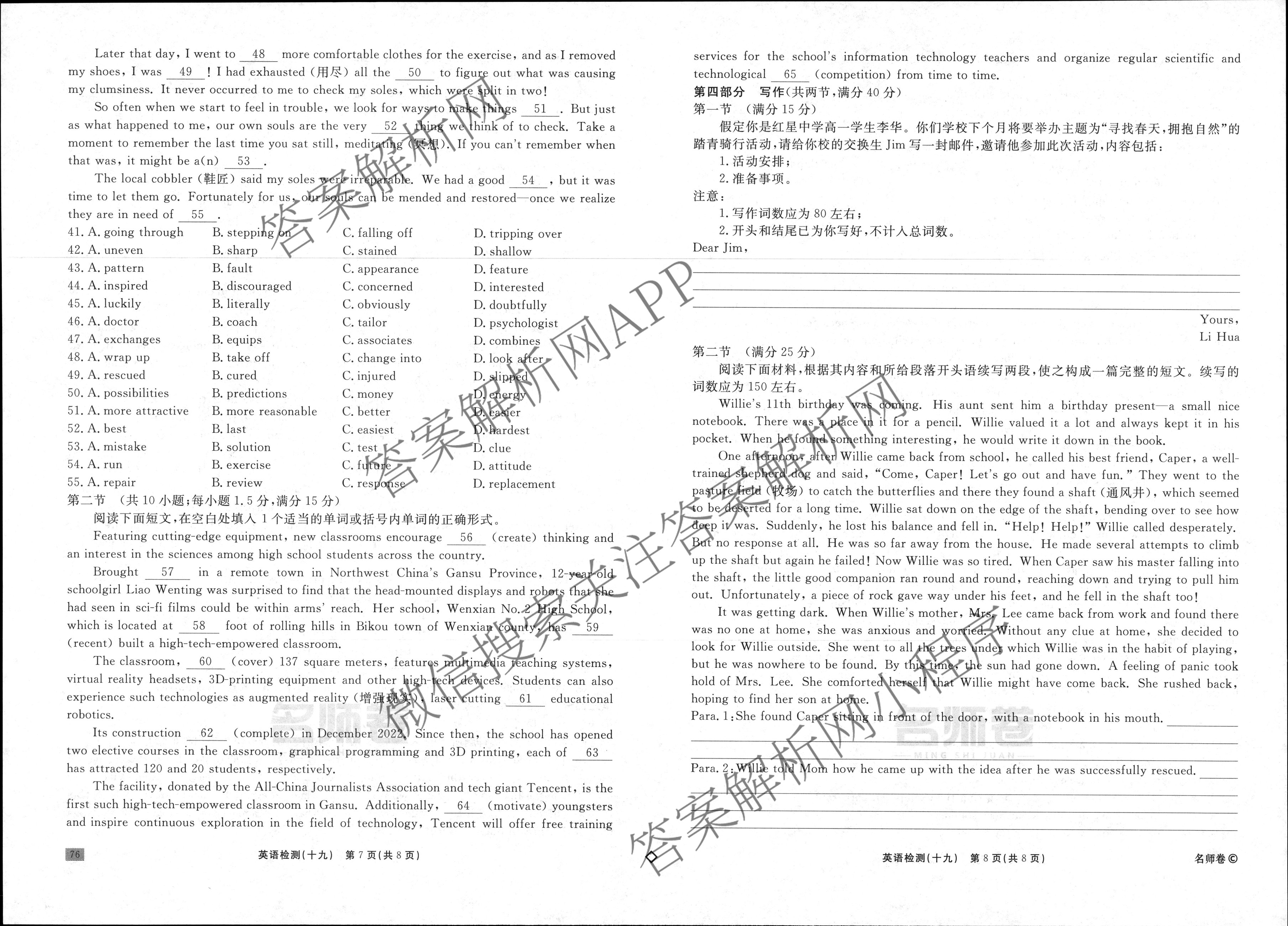 衡水名师卷·2024-2025学年度高三一轮复习单元检测卷·英语(空心菱形)·检测(十九)19试题,目前分科卷答案网已经汇总了衡水名师卷·2024-2025学年度高三一轮复习单元检测卷·英语(空心菱形)·检测(十九)19试题的各科答案和试卷,获取更多衡水名师卷答案解析,请在关注本站。