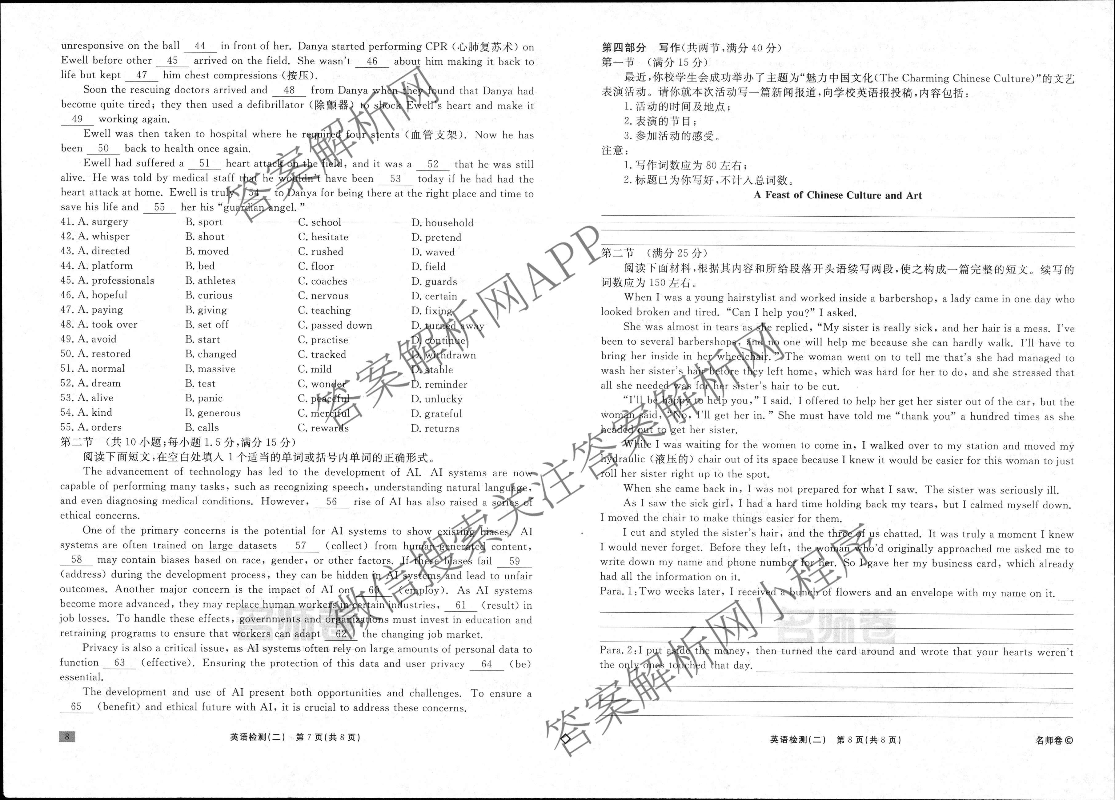 衡水名师卷·2024-2025学年度高三一轮复习单元检测卷·英语(空心菱形)·检测(二)2试题,目前分科卷答案网已经汇总了衡水名师卷·2024-2025学年度高三一轮复习单元检测卷·英语(空心菱形)·检测(二)2试题的各科答案和试卷,获取更多衡水名师卷答案解析,请在关注本站。