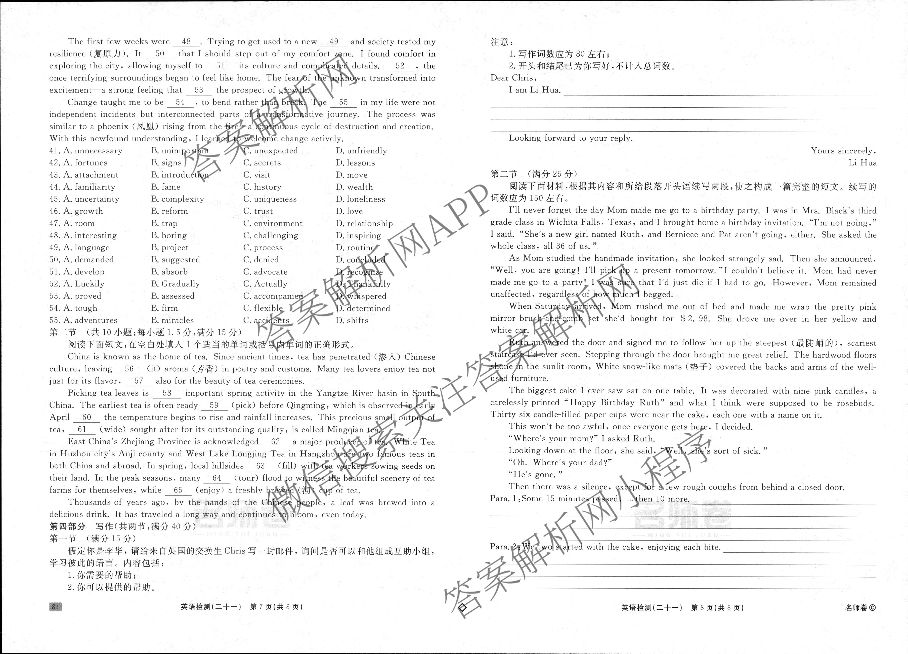衡水名师卷·2024-2025学年度高三一轮复习单元检测卷·英语(空心菱形)·检测(二十一)21试题,目前分科卷答案网已经汇总了衡水名师卷·2024-2025学年度高三一轮复习单元检测卷·英语(空心菱形)·检测(二十一)21试题的各科答案和试卷,获取更多衡水名师卷答案解析,请在关注本站。
