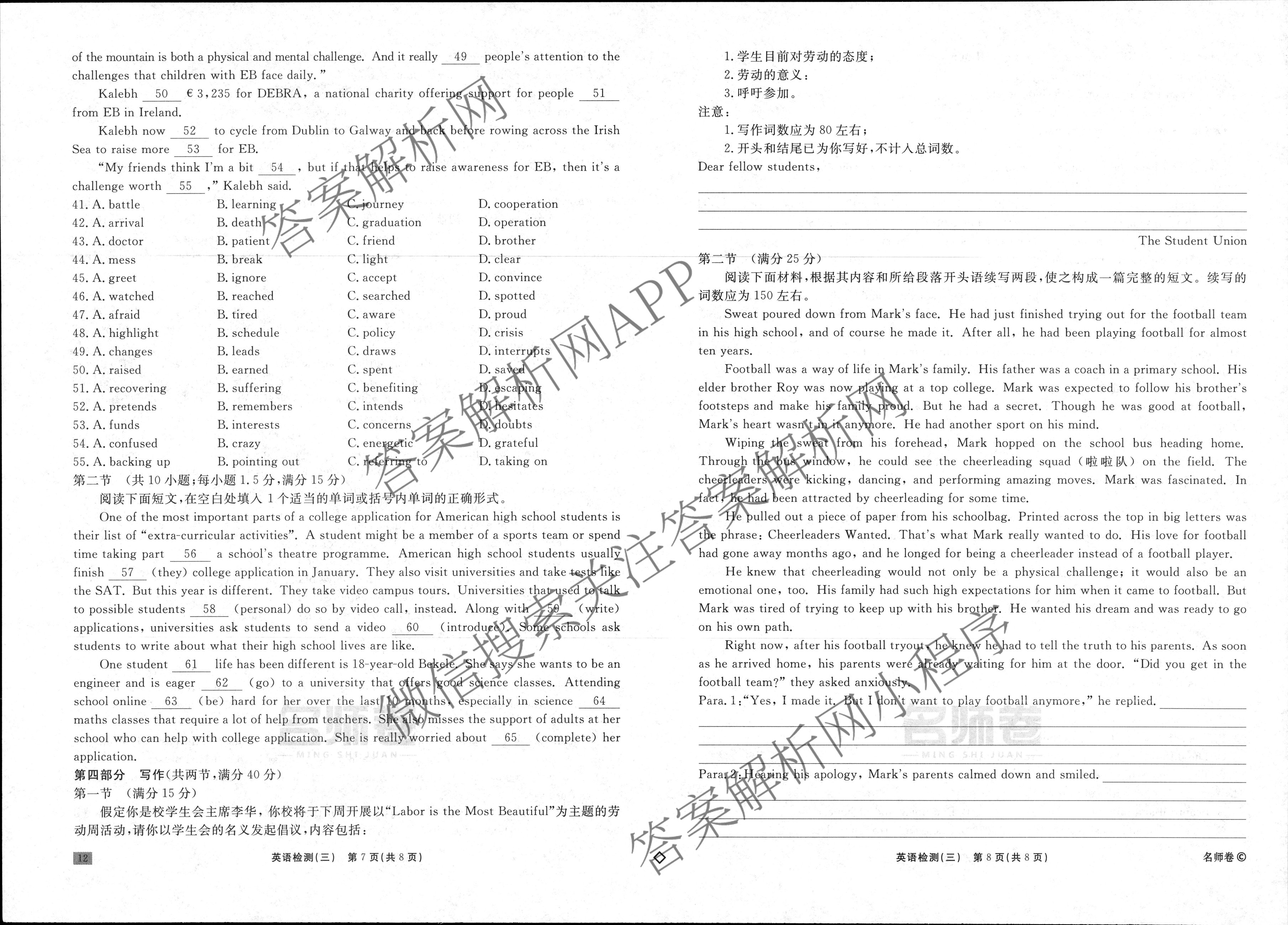 衡水名师卷·2024-2025学年度高三一轮复习单元检测卷·英语(空心菱形)·检测(三)3试题,目前分科卷答案网已经汇总了衡水名师卷·2024-2025学年度高三一轮复习单元检测卷·英语(空心菱形)·检测(三)3试题的各科答案和试卷,获取更多衡水名师卷答案解析,请在关注本站。