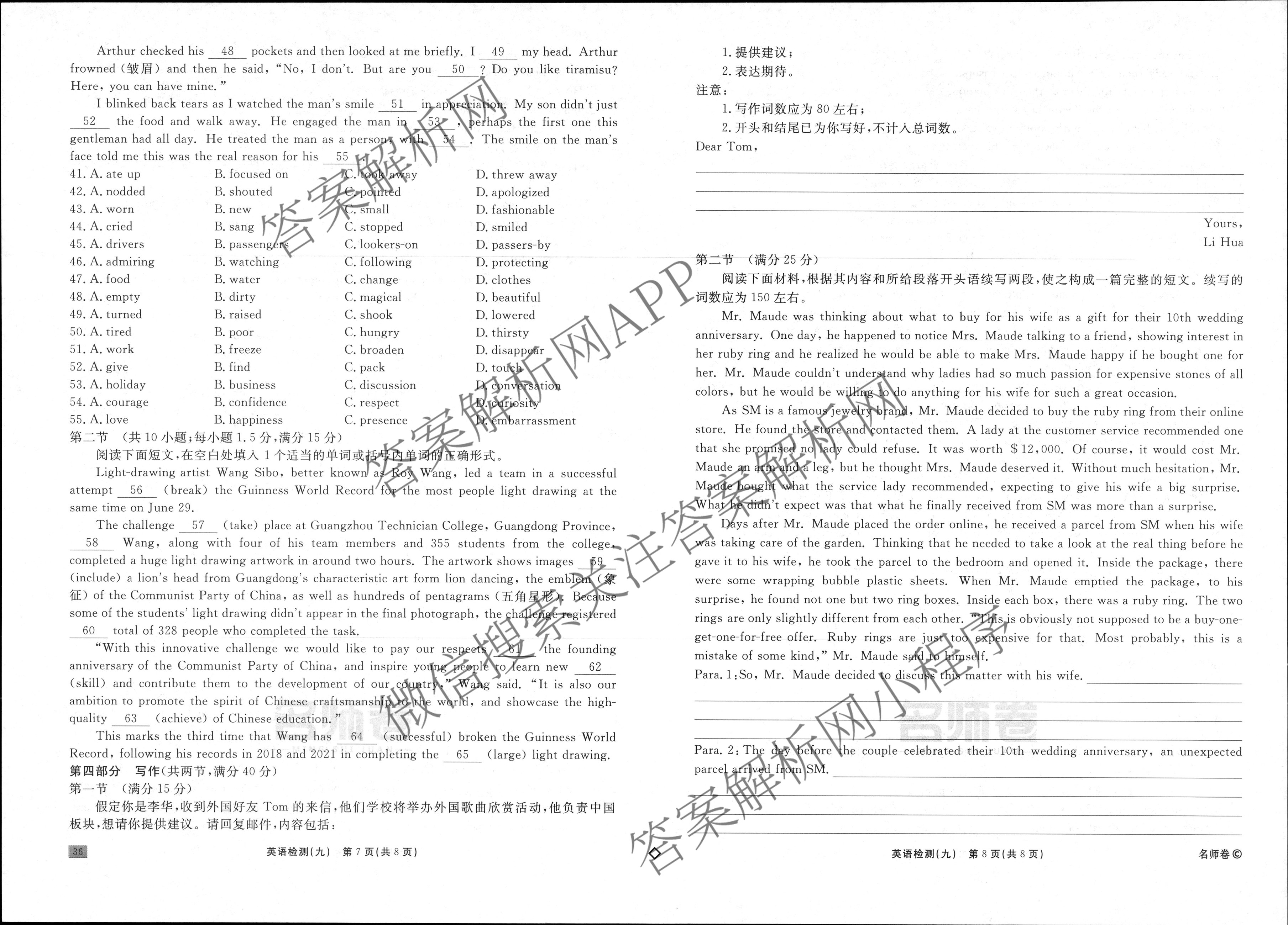 衡水名师卷·2024-2025学年度高三一轮复习单元检测卷·英语(空心菱形)·检测(九)9试题,目前分科卷答案网已经汇总了衡水名师卷·2024-2025学年度高三一轮复习单元检测卷·英语(空心菱形)·检测(九)9试题的各科答案和试卷,获取更多衡水名师卷答案解析,请在关注本站。