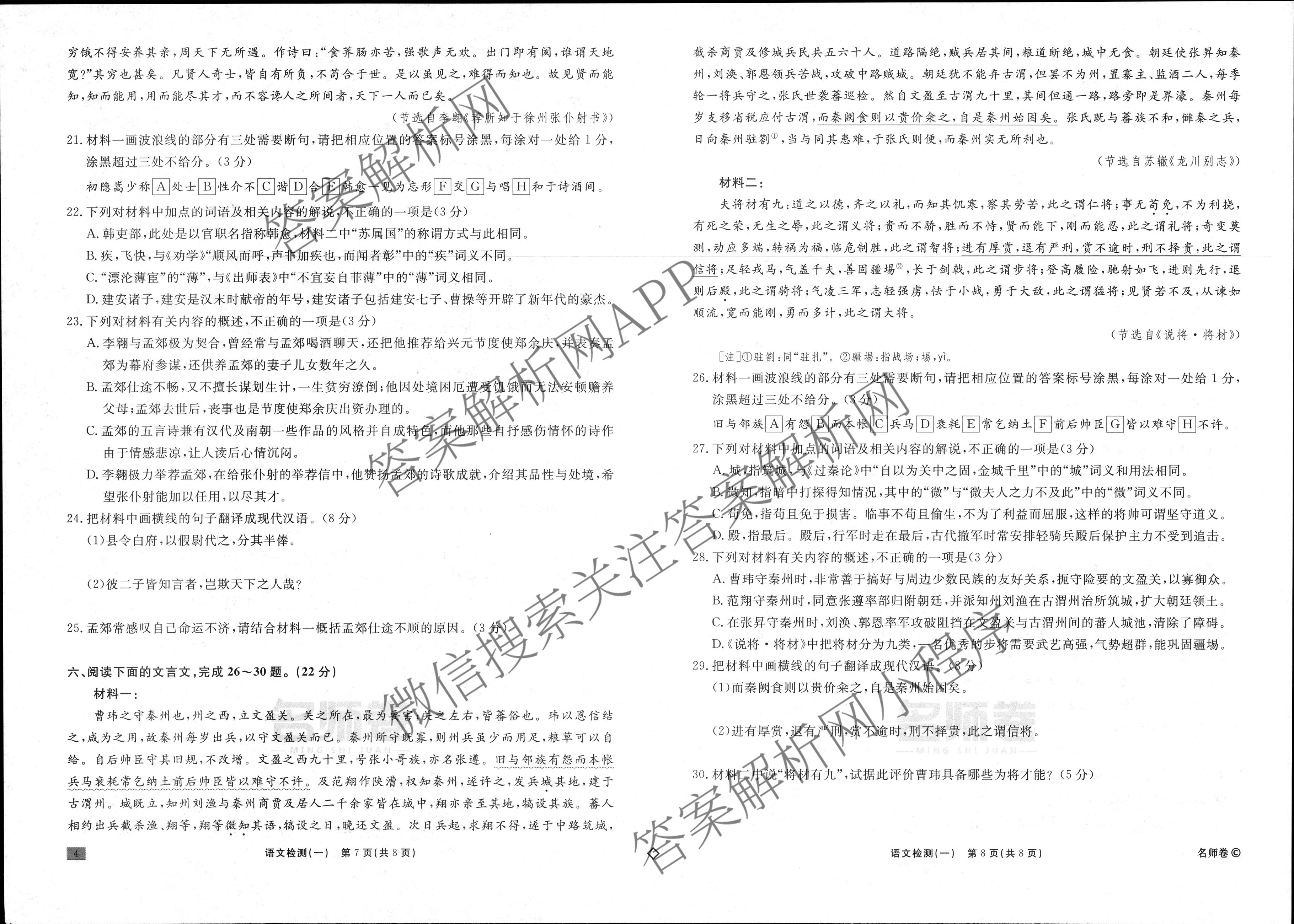衡水名师卷·2024-2025学年度高三一轮复习单元检测卷·语文(空心菱形)·检测(一)1试题,目前分科卷答案网已经汇总了衡水名师卷·2024-2025学年度高三一轮复习单元检测卷·语文(空心菱形)·检测(一)1试题的各科答案和试卷,获取更多衡水名师卷答案解析,请在关注本站。