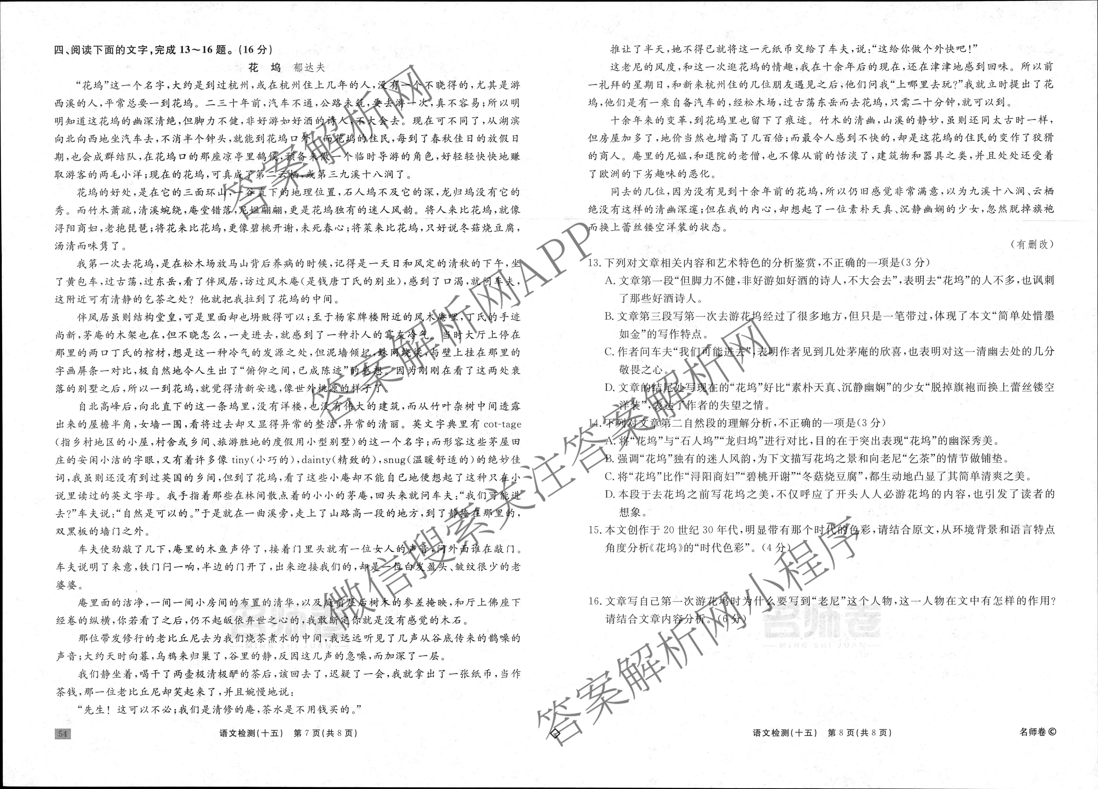衡水名师卷·2024-2025学年度高三一轮复习单元检测卷·语文(空心菱形)·检测(十五)15试题,目前分科卷答案网已经汇总了衡水名师卷·2024-2025学年度高三一轮复习单元检测卷·语文(空心菱形)·检测(十五)15试题的各科答案和试卷,获取更多衡水名师卷答案解析,请在关注本站。