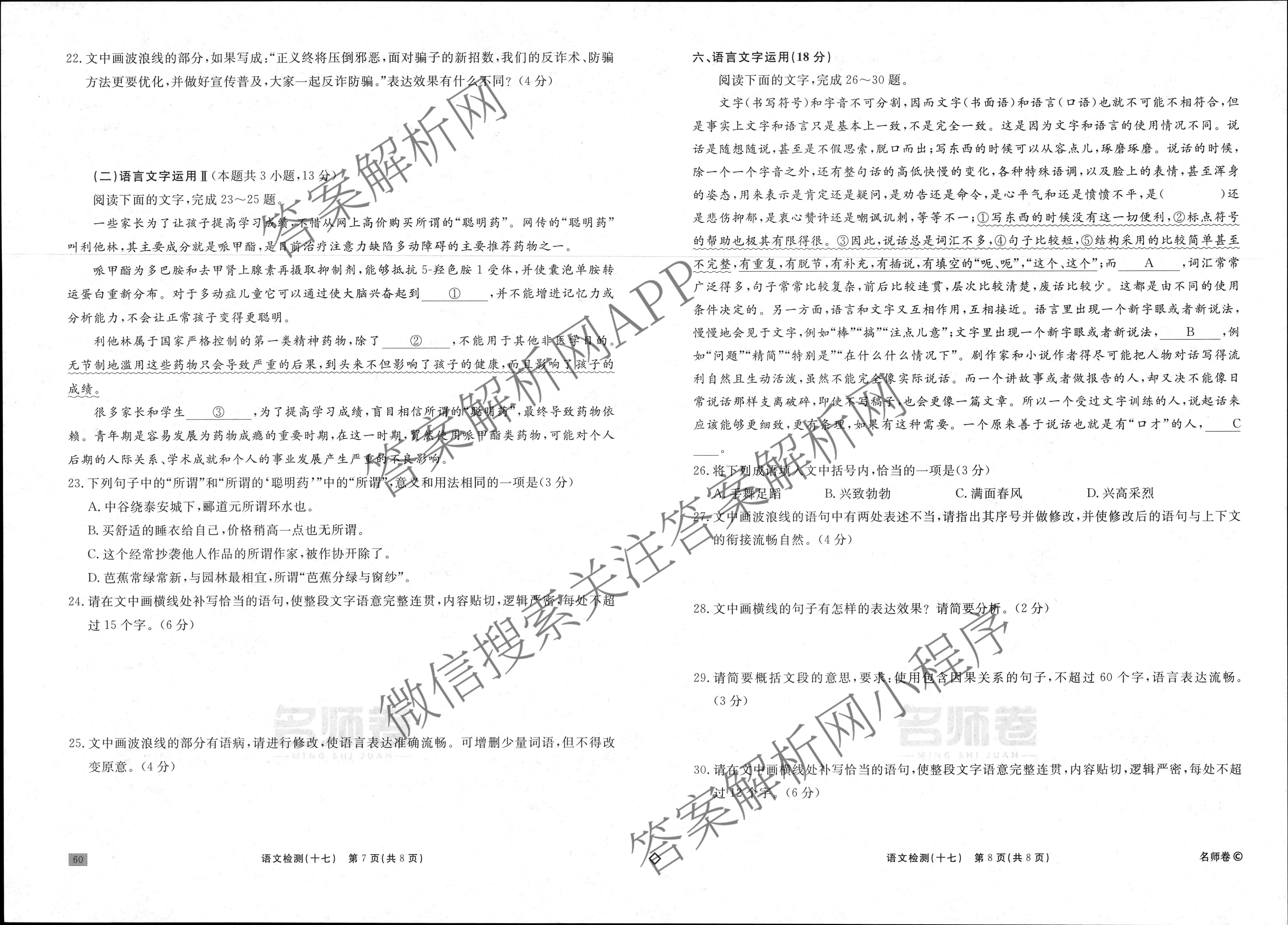 衡水名师卷·2024-2025学年度高三一轮复习单元检测卷·语文(空心菱形)·检测(十七)17试题,目前分科卷答案网已经汇总了衡水名师卷·2024-2025学年度高三一轮复习单元检测卷·语文(空心菱形)·检测(十七)17试题的各科答案和试卷,获取更多衡水名师卷答案解析,请在关注本站。