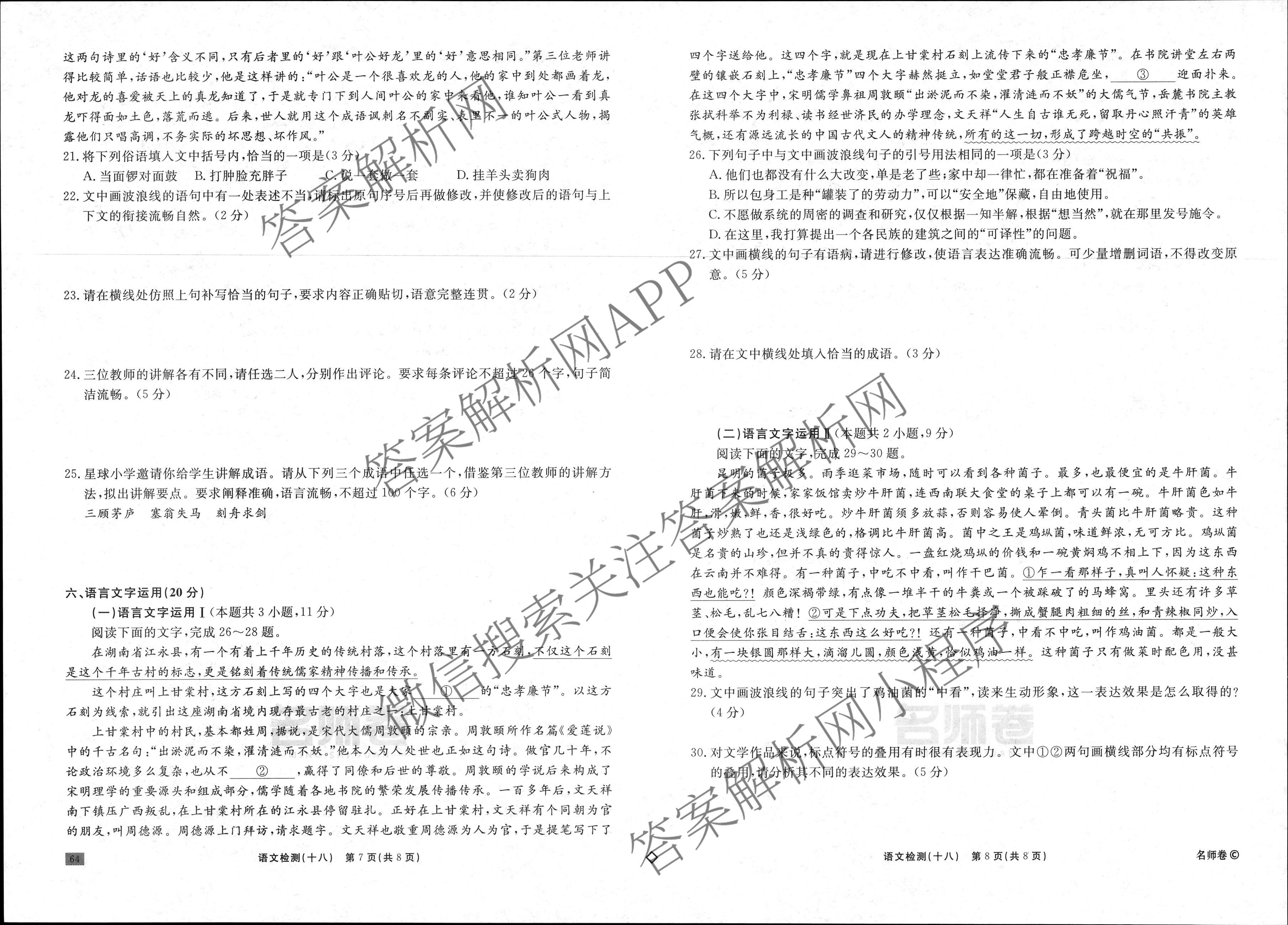 衡水名师卷·2024-2025学年度高三一轮复习单元检测卷·语文(空心菱形)·检测(十八)18试题,目前分科卷答案网已经汇总了衡水名师卷·2024-2025学年度高三一轮复习单元检测卷·语文(空心菱形)·检测(十八)18试题的各科答案和试卷,获取更多衡水名师卷答案解析,请在关注本站。